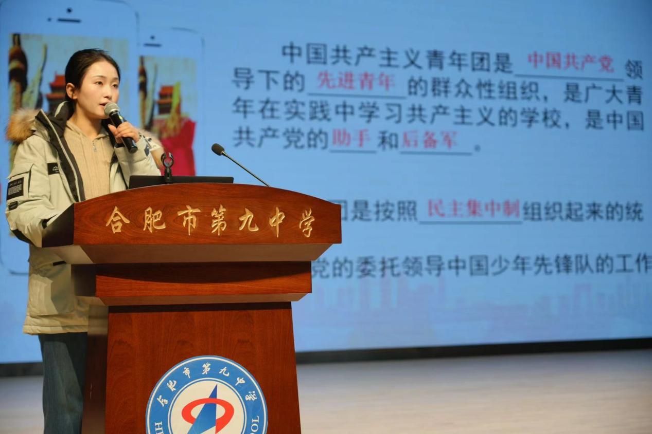 为加强新时代团员队伍建设和教育管理,提升学校团组织建设水平,进一步引导优秀青年向团组织靠拢,3月6日下午5:30,合肥九中在庐州学堂举行了2024届团校开班仪式暨团课第一讲。仪式由校学生会学习部部长高二23班马逸涵同学主持,校党委委员、副校长范玮,团委副书记甘嘉蓓,高二、高三级部德育工作负责人王俊峰和邵帅以及各班级入团积极分子参会。