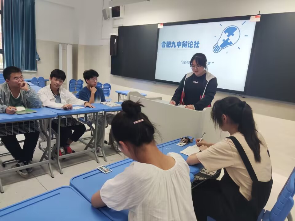 载知行万里,辩声满校园。辩论赛是语言艺术的展示,是思维认知的碰撞,更是同学们讨论社会热点的舞台。合肥九中辩论社始终秉承“做真人,成英才”的校训,以仁心说,以学心听,以公心辩,致力于丰富同学们的校园生活,培养同学们的思维反应能力和语言表达能力。