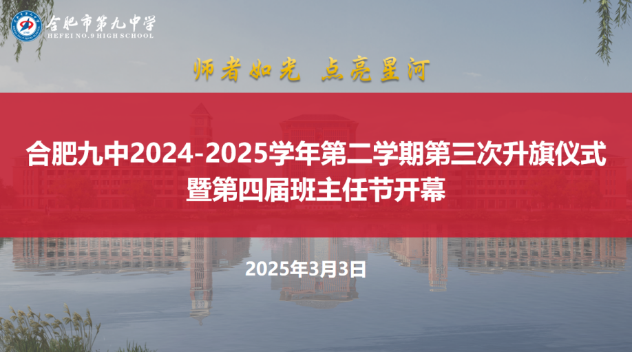 2025年3月3日上午,合肥九中“师者如光 点亮星河”班主任节开幕式在新站校区举行,因天气原因,本次仪式通过线上直播方式进行,各班级同学在教室内参加仪式。校党委副书记、校长张永剑,校党委委员、副校长汪玉慧出席仪式。