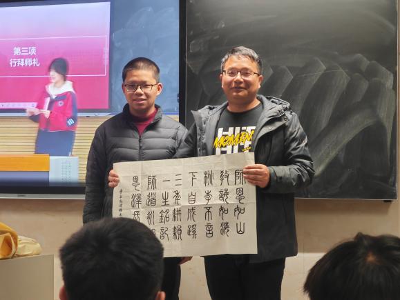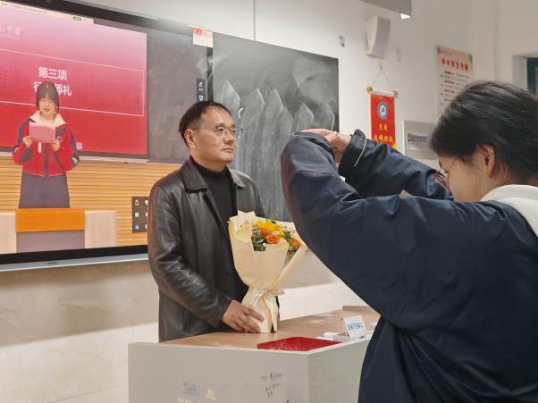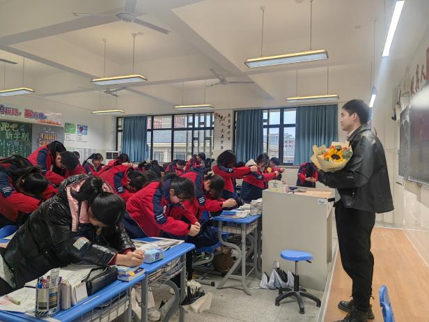 紧接着,激动人心的时刻到来。学生代表手捧鲜花,满怀感激之情走到班主任面前,向班主任们一一赠送鲜花。一束束鲜花,传递着学生们对班主任深深的敬意和爱戴,也凝聚着师生之间的深厚情谊。随后,全体学生整齐列队,在主持人的引导下,共同行拜师礼。这一刻,学生们用最传统的方式,向班主任们表达了自己的敬意和感激之情。拜师礼的举行,不仅加深了师生之间的情感联系,也进一步弘扬了尊师重教的优良传统。