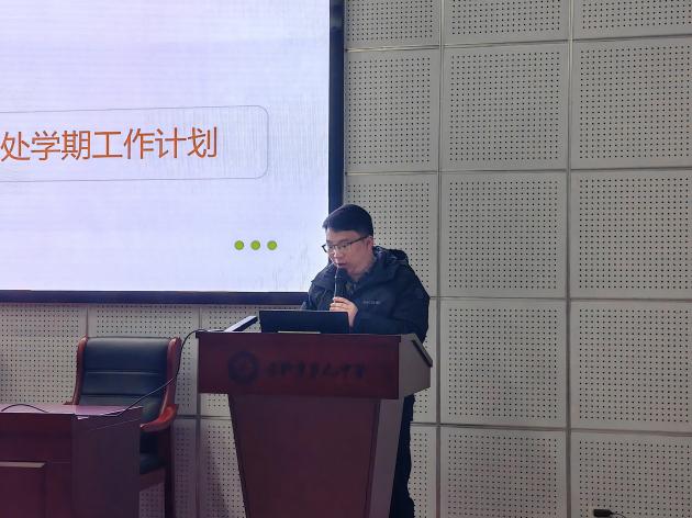 团委胡皖南老师就新学期团委工作计划进行报告。胡老师围绕“挺膺担当励青春,奋楫笃行向未来”主题阐述了新学期团委在团组织建设、学生社团发展、志愿服务活动等方面的规划和设想。新学期,团委将进一步加强与校内各部门的合作,为学生提供更多展示自我、锻炼能力的平台,打造更多具有特色的文化活动品牌。