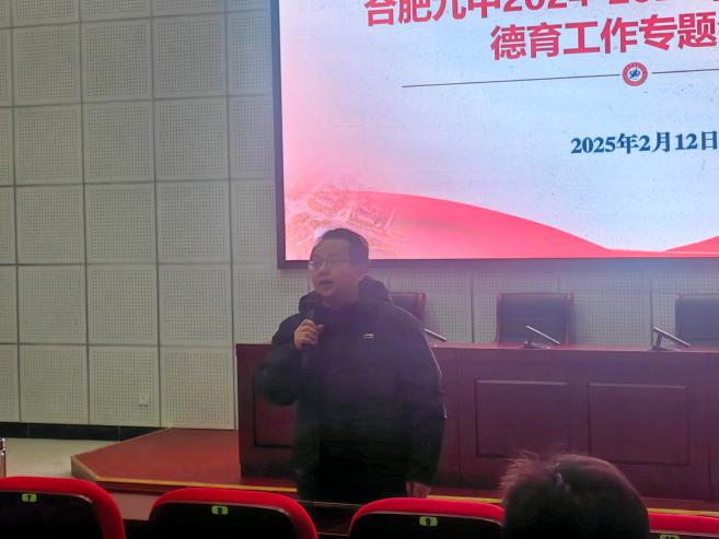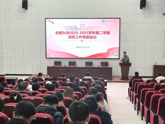 为进一步提升德育工作水平,明确新学期工作方向和目标,2月12日下午,合肥九中召开2024-2025学年第二学期德育工作专题会议,校党委副书记、校长张永剑,校党委委员、副校长范玮,校党委委员、副校长汪玉慧,政教处主任马亚亮、高一高二年级部主任、全体班主任、生活老师等德育工作者共同参会。会议由政教处副主任崔亚丽主持。