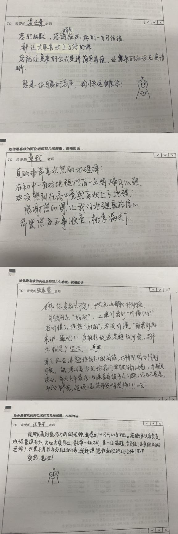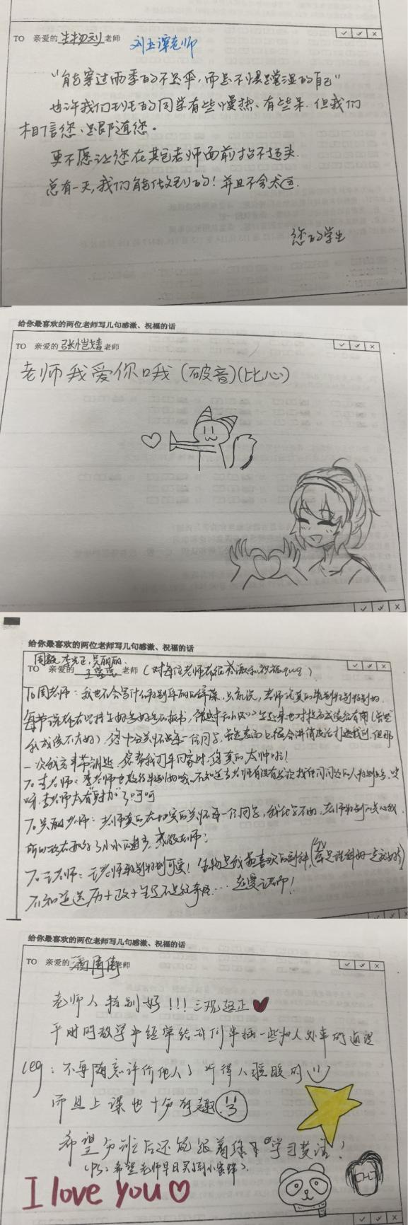 在合肥九中,学生们也以自己独特的方式表达着对老师的感激和敬爱。他们用笔写下真挚的话语,纸短情长,其中蕴含着学生们对老师的深深敬意和感激之情。