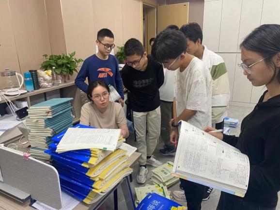 随着下课铃声的响起,同学们不是追逐打闹、聚众闲聊,而是拿着课本、习题、练习册,将老师团团围住,争先恐后的提问题、求解答。学生争分夺秒地学习知识,老师也不知疲惫地为他们答疑解惑,师生探讨交流,其乐融融,成为校园一道美丽的风景线。在九中校园,知识的传递不再局限于课堂,而是成为了一种随时随地都可以发生的互动。