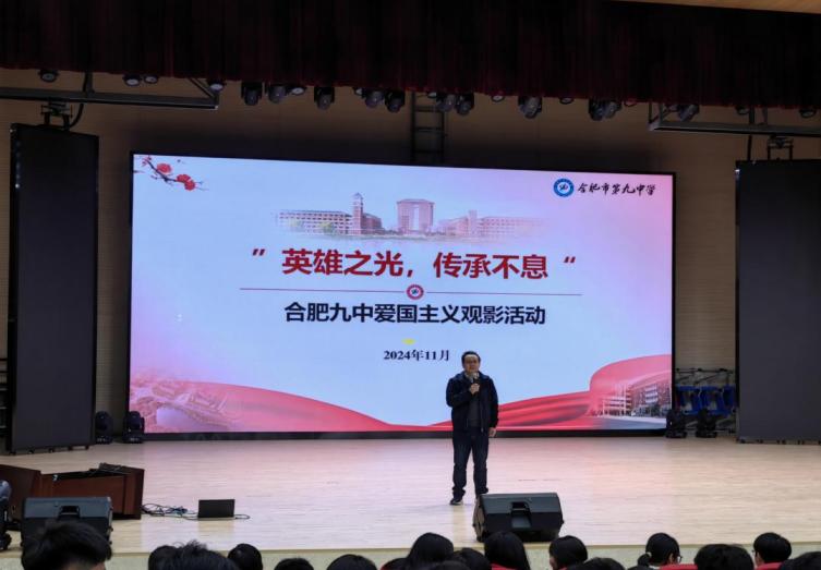 为弘扬爱国主义精神,增强学子的民族自豪感和责任感,培养学生积极的学业情绪,11月17日晚间,合肥九中分校区、分年级、分会场举办了爱国主义观影活动。此次活动以“英雄之光,传承不息”为主题,旨在通过经典爱国主义电影的放映,激发学生的爱国热情,培养他们的国家意识和民族情怀。
