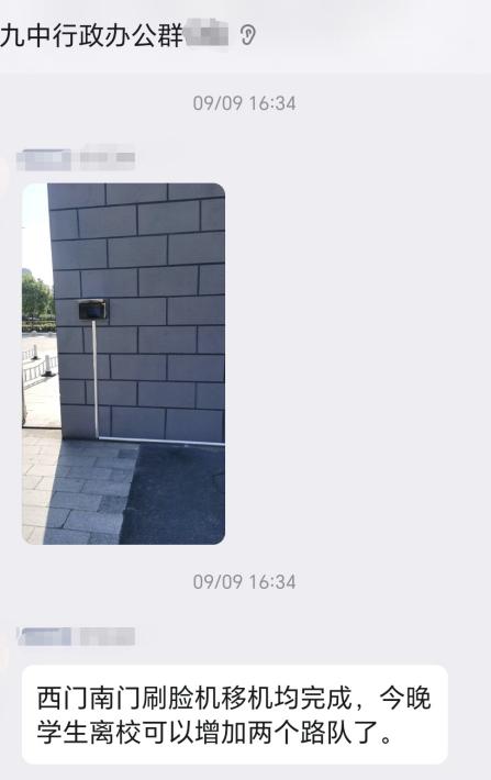 为了保障学生的安全,合肥九中走读生离校需刷脸验证信息,因此有时存在三个年级放学高峰期出现学生排队刷脸队伍过长问题,为了提升走读生离校速度,学校增设离校通道,调配校内刷脸机至大门处,增派保安值守人员,尽最大努力在保证学生安全的前提下减少学生排队等待刷脸离校的时间。目前,走读生离校速度大大提升。