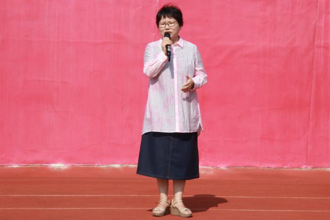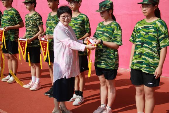 汪玉慧作军训总结讲话,她对同学们在军训期间表现出的朝气、勇气和锐气给予了充分肯定,向以身作则、辛勤工作的教官和班主任老师们表达了敬意,同时也勉励同学们将军训的拼搏精神延伸到日后的学习中去,不断进步,追求卓越,在今后的学习生活中全力以赴,勇攀高峰,谱写绚丽多彩的青春华章。