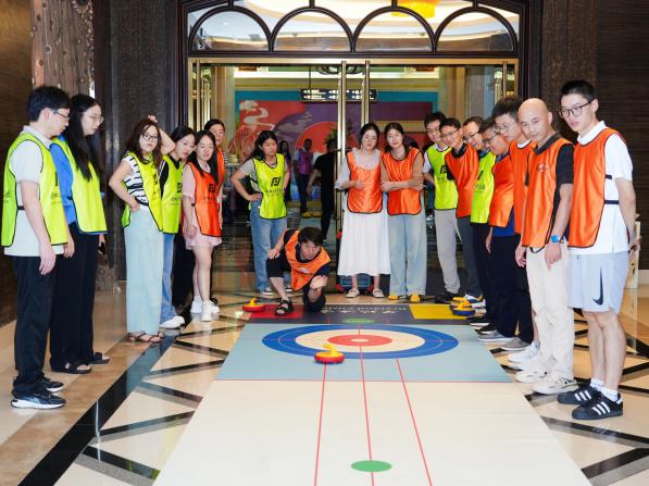 随后,一系列精心设计的团体游戏让现场气氛迅速升温。其中,“超音速团队”游戏考验了团队的智慧和协作能力,让班主任们在游戏中学会了如何更好地沟通与配合,共同解决问题。“旱地冰壶”游戏更是以其独特的魅力吸引了所有班主任的参与,大家在欢声笑语中拉近了彼此的距离,增强了团队的信任感和凝聚力。