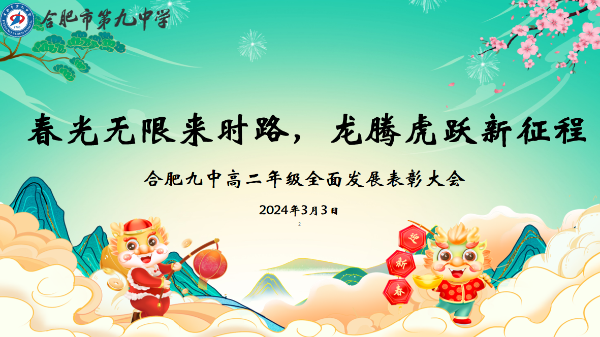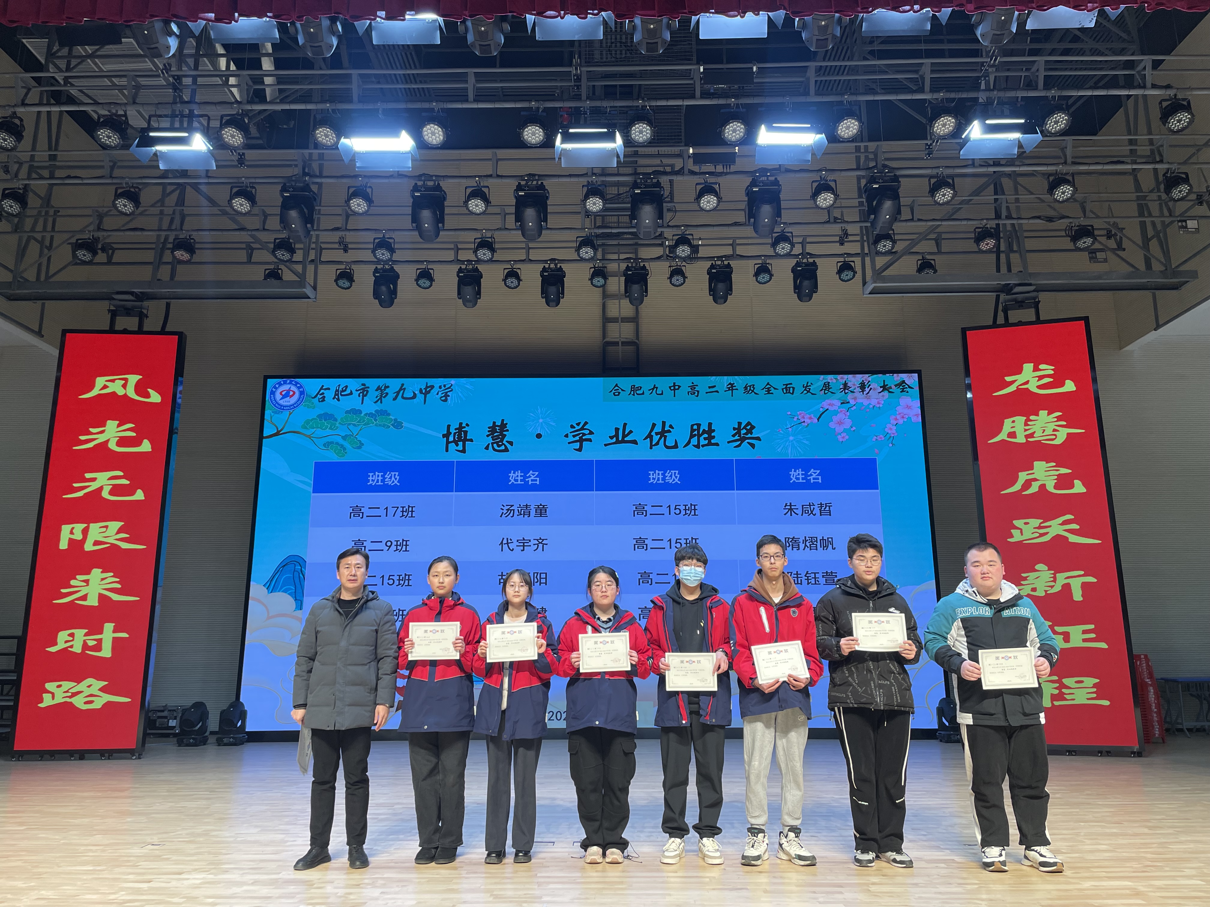 勤学终得榜上名,青春奋斗正当时。正逢春暖花开,万物舒然之际,为表彰优秀,树立榜样,3月3日下午,合肥九中高二年级在庐州学堂召开学生全面发展表彰大会,向在五育发展方面取得优异成绩的同学表示热烈祝贺。合肥九中党委委员、副校长范玮、高二年级部主任王传军同步参会,会议由高二年级部德育干事王俊峰主持。