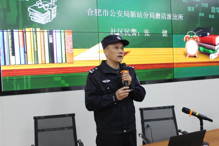 为建设平安校园,提高中学生的法律意识和法治观念,迎接即将到来的寒假,1月8日下午,合肥九中特邀学校法治副校长、新站区磨店派出所张健警官走进校园,为同学们带来了一节生动而深刻的法治教育课。