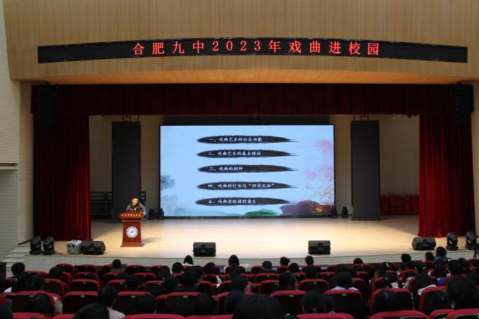 为弘扬中华传统戏曲文化,加强新时代学校传统文化教育,增强学生文化素养和文化自信。11月19日下午,合肥九中开展“戏曲进校园”活动。本次活动邀请到国家一级导演、安徽艺术学院副教授丁山担任主讲嘉宾,安徽艺术学院讲师刘思婷以及两位毕业班同学担任助演嘉宾。活动由校团委副书记甘嘉蓓主持,学校艺术类社团指导老师和同学共同聆听讲座并参与互动。