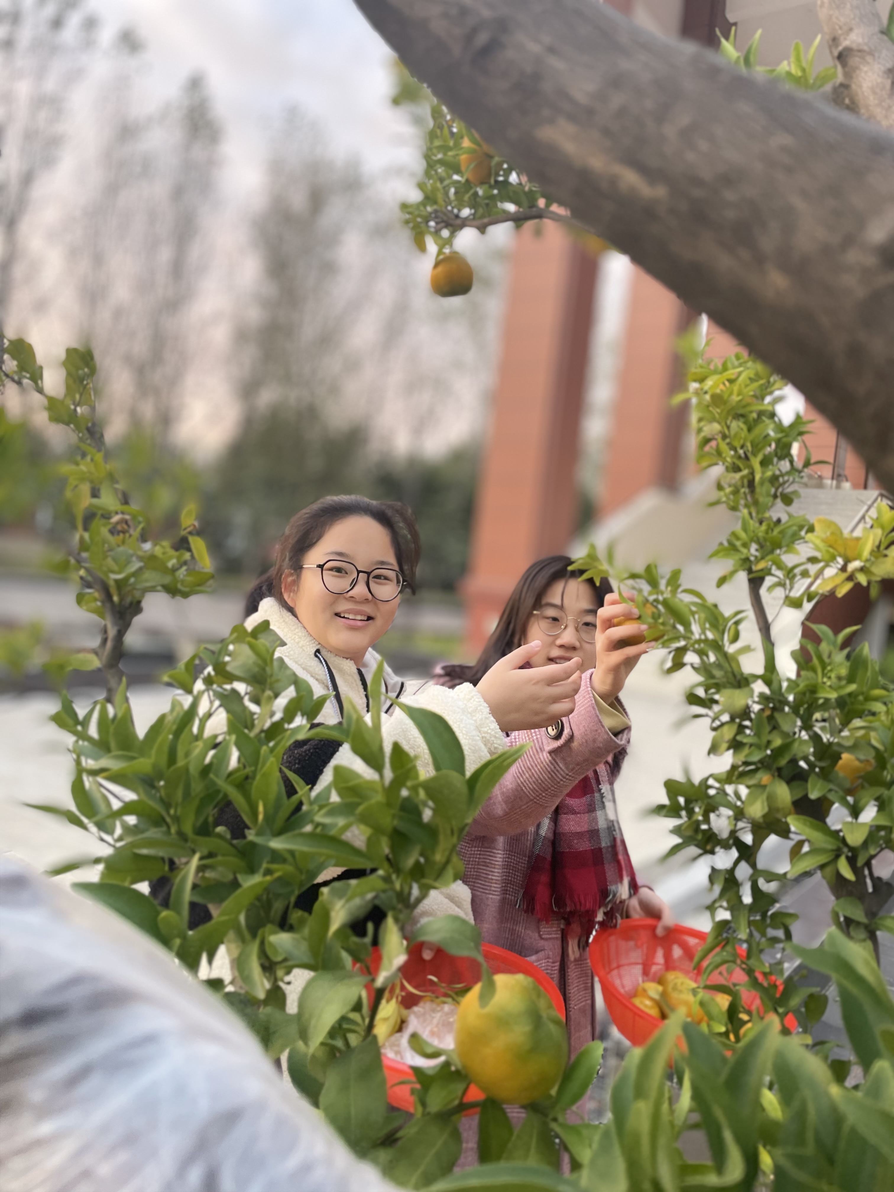 在采摘的过程中,同学们三五成群,穿梭在硕果累累的橘树下,他们互相帮助,相互配合,共同摘下秋天的果实。同学们的脸上洋溢着快乐的笑容,享受着这份来自校园的礼物。