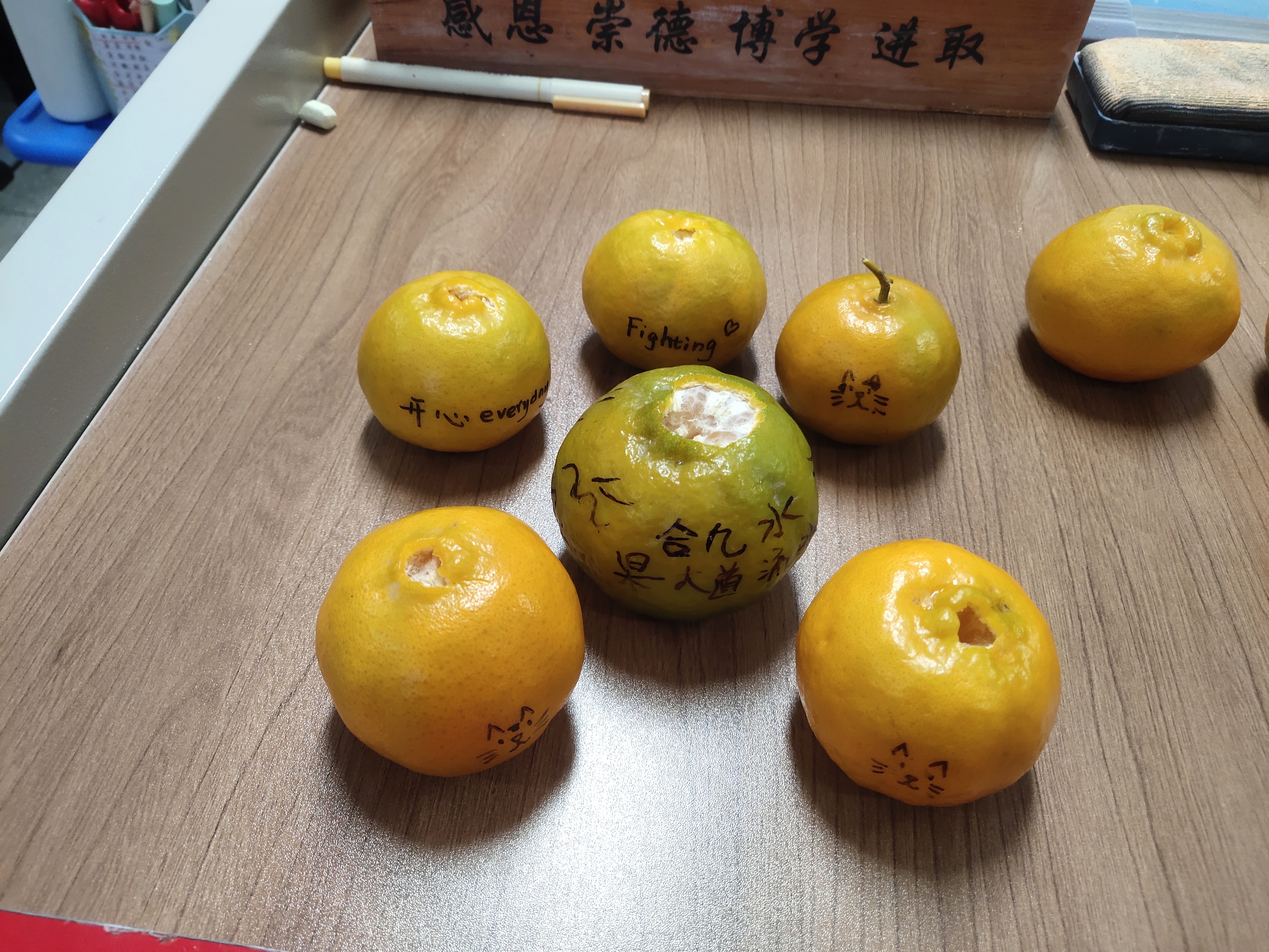 一年好景君须记,正是橙黄橘绿时。最后,同学们将采摘的果实送到年级部,通过年级部组织分享给全体师生,这是金秋最美妙味道的分享,也是同学们劳动记忆的分享!作为九中新校区的第一届学生,同学们与这些果树一样在九中这片热土上持续成长,如今果树们已结出丰硕果实,相信同学们也能够在炽热六月披荆斩棘,让青春梦想开花结果!