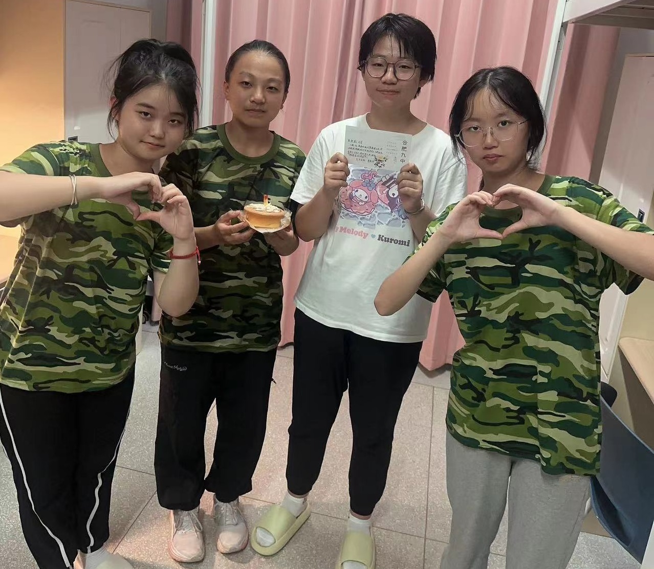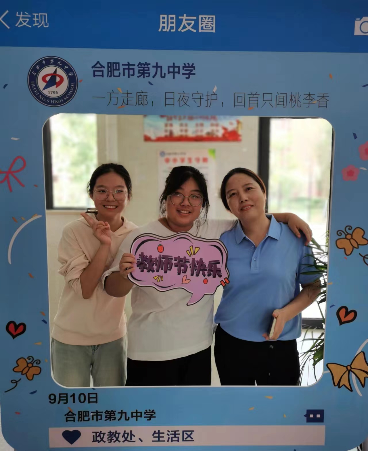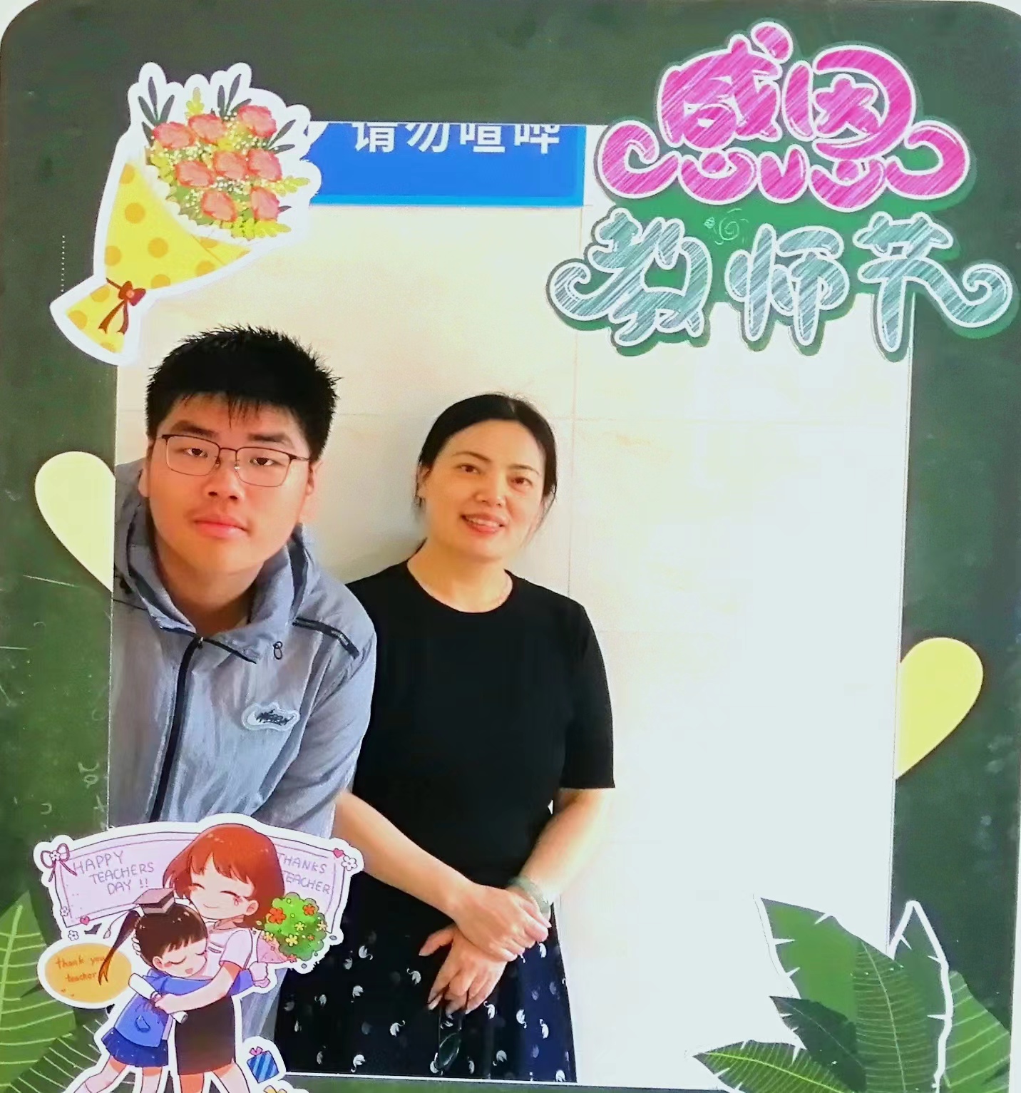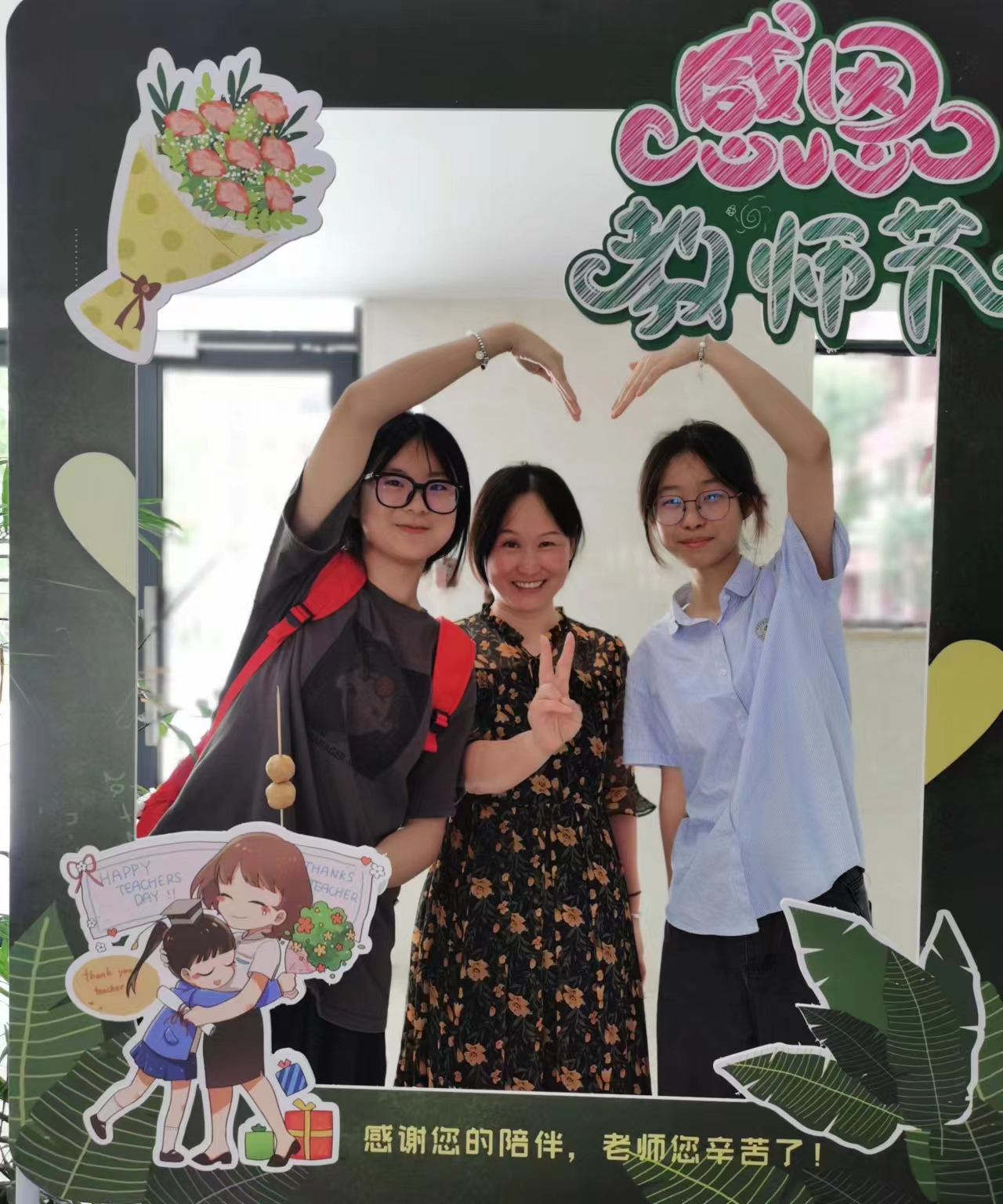 在打卡相框前,定格下同学们与生活老师温暖瞬间!