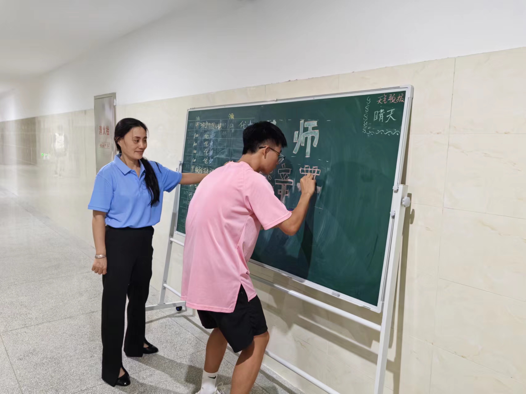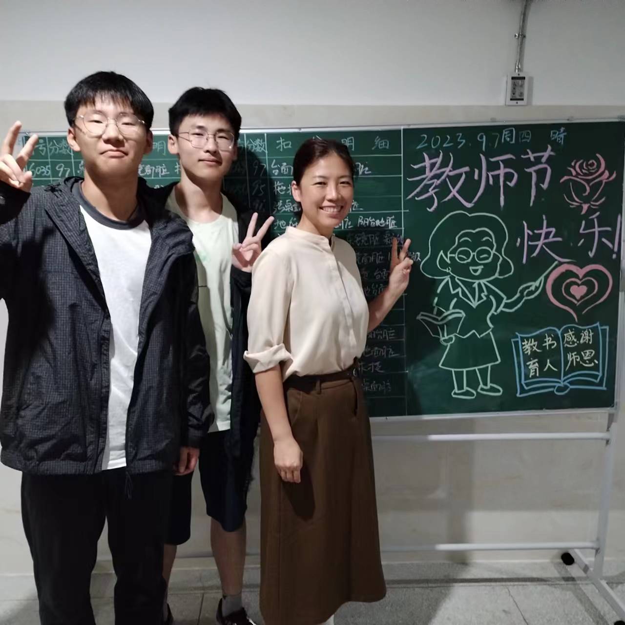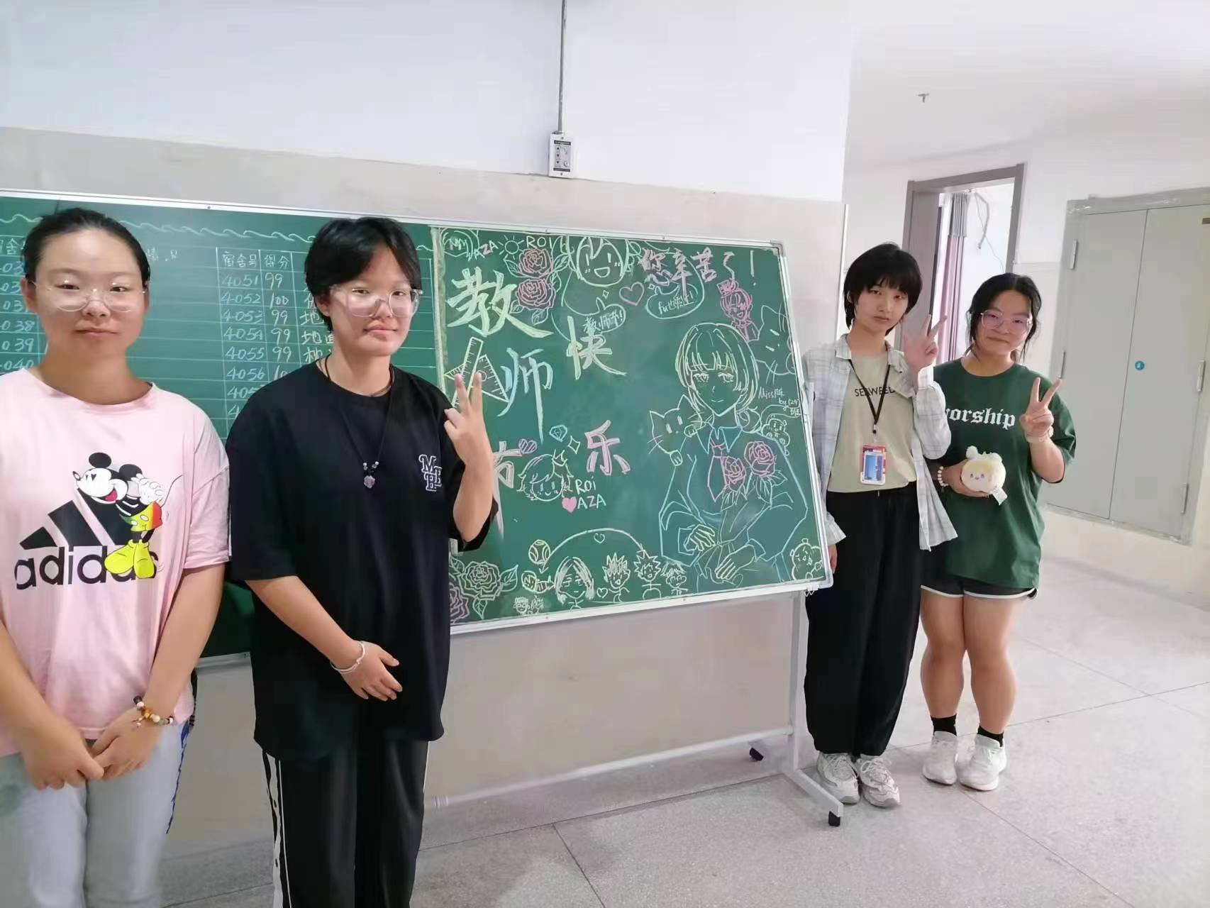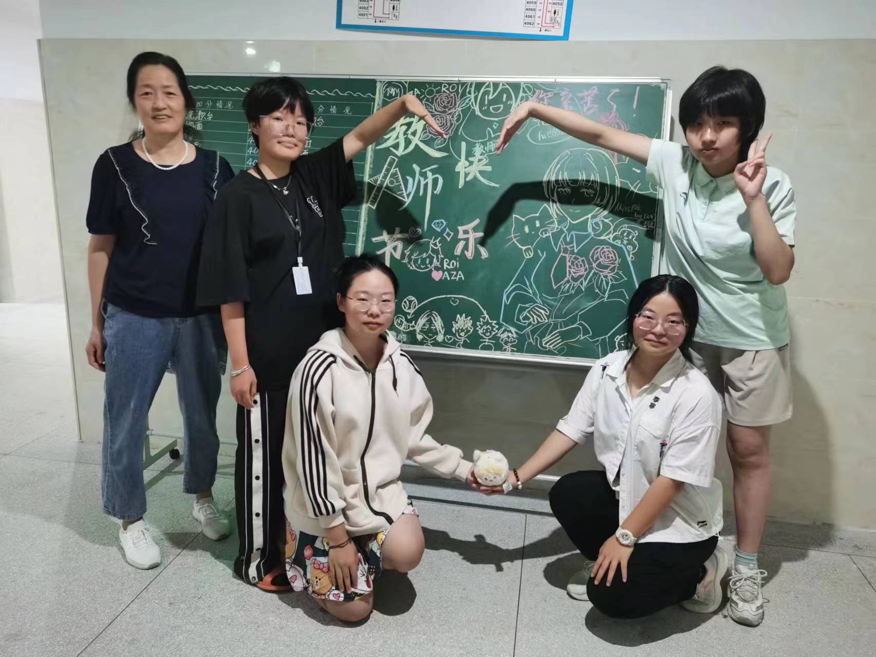生活老师们的爱和付出,同学们看在眼里记在心里,也在用行动表达着感恩之情,在第39个教师节来临之际,同学们在生活区的黑板上写下最动人的话语,祝福生活老师们节日快乐!
