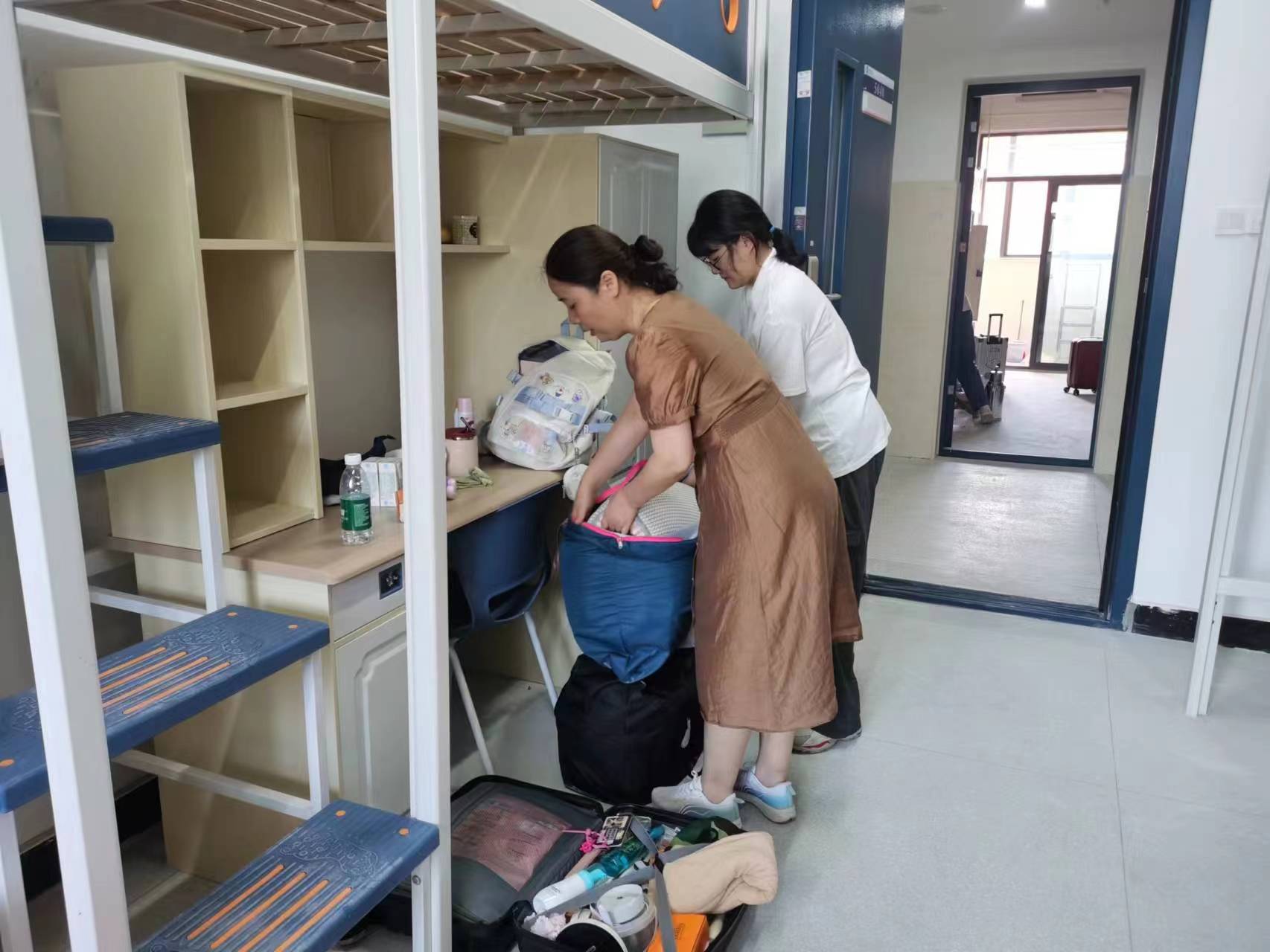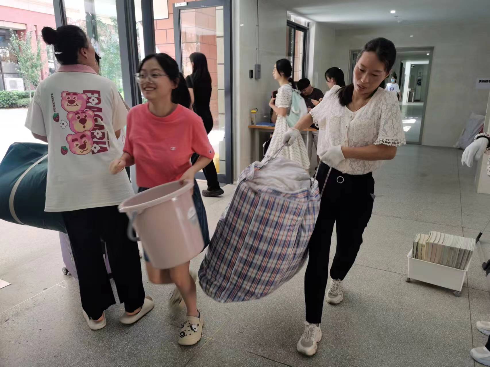 当同学们第一天报到入学时,他们身影忙碌,帮助同学们搬运行李,指导同学们整理内务