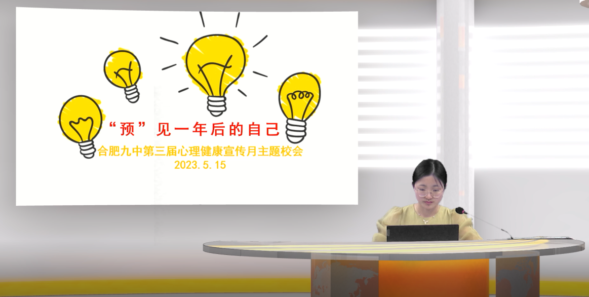 为帮助合肥九中高二学子留下成长的印迹,规划好接下来的高三生活,5月15日,心理健康教育教师程红利于养正楼8楼电视台为高二年级带来了“5·25”心理健康宣传月系列活动之“‘预’见一年后的自己”生涯规划主题校会。