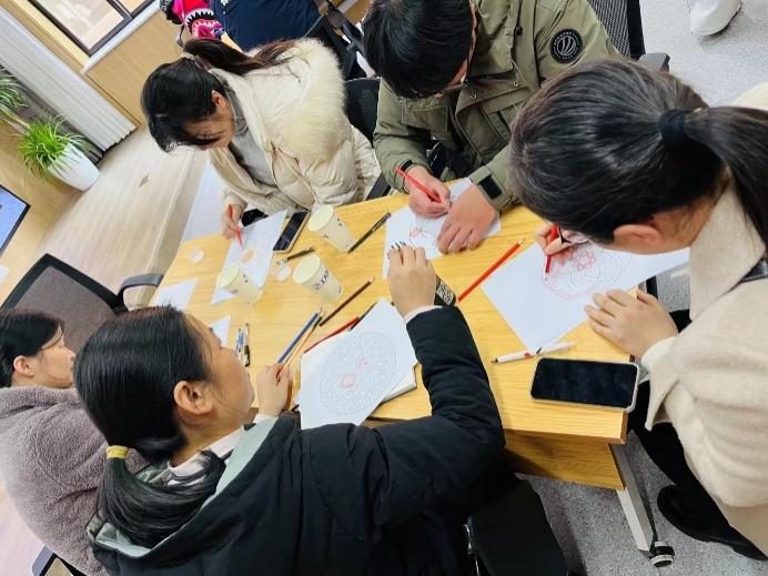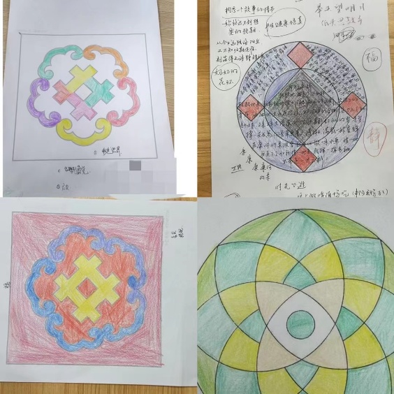 曼陀罗,这一源自古老智慧的符号,不仅是艺术的载体,更是心灵的镜子。张桦老师巧妙地将曼陀罗绘画与心理健康教育相结合,为在场的每一位听众打开了一扇通往自我内心深处的大门。讲座伊始,张桦老师简单介绍了曼陀罗的基本概念,让听众对这一神秘而美丽的图案有了初步的认识。随后,张桦老师邀请参会人员挑选心仪的图案并拿起画笔,绘制属于自己的曼陀罗。在悠扬的音乐声中,大家纷纷沉浸在了创作的世界里,笔尖在纸上跳跃,色彩在色彩在画布上绽放,每一幅曼陀罗都承载着绘制者独特的情感与思绪。
