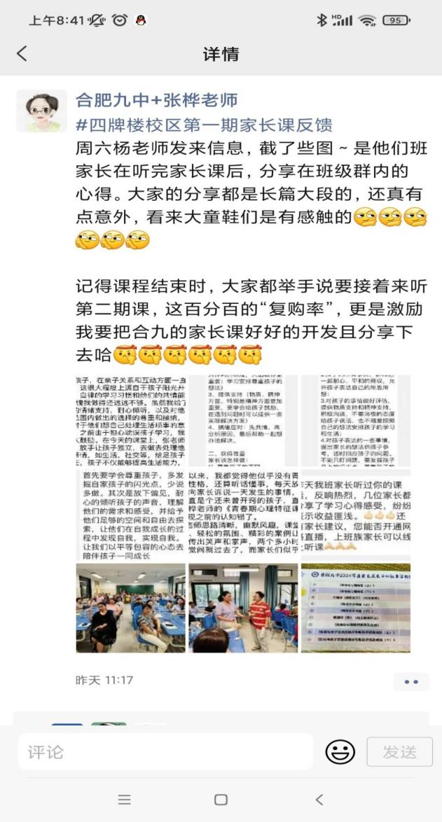 在合肥九中,家校共育的理念得到了全新的诠释和实践。自2022年9月起,由学校图书馆馆长张桦老师带领的“家长学校”项目,已经成功举办了63期课程,吸引了约2500人次家长的参与。这一项目不仅受到了家长们的广泛好评,更在促进家校合作、助力学生成长方面取得了显著成效。