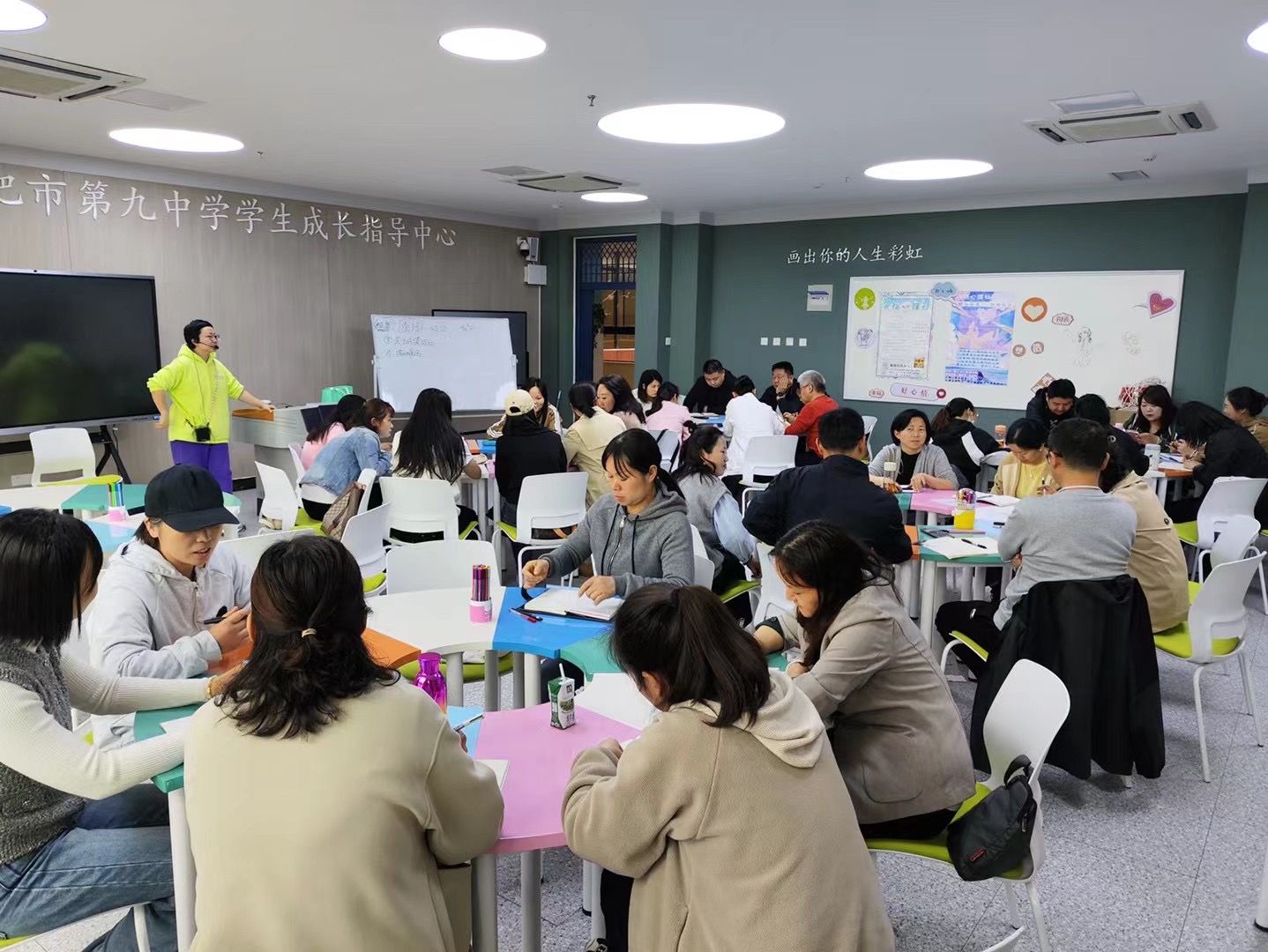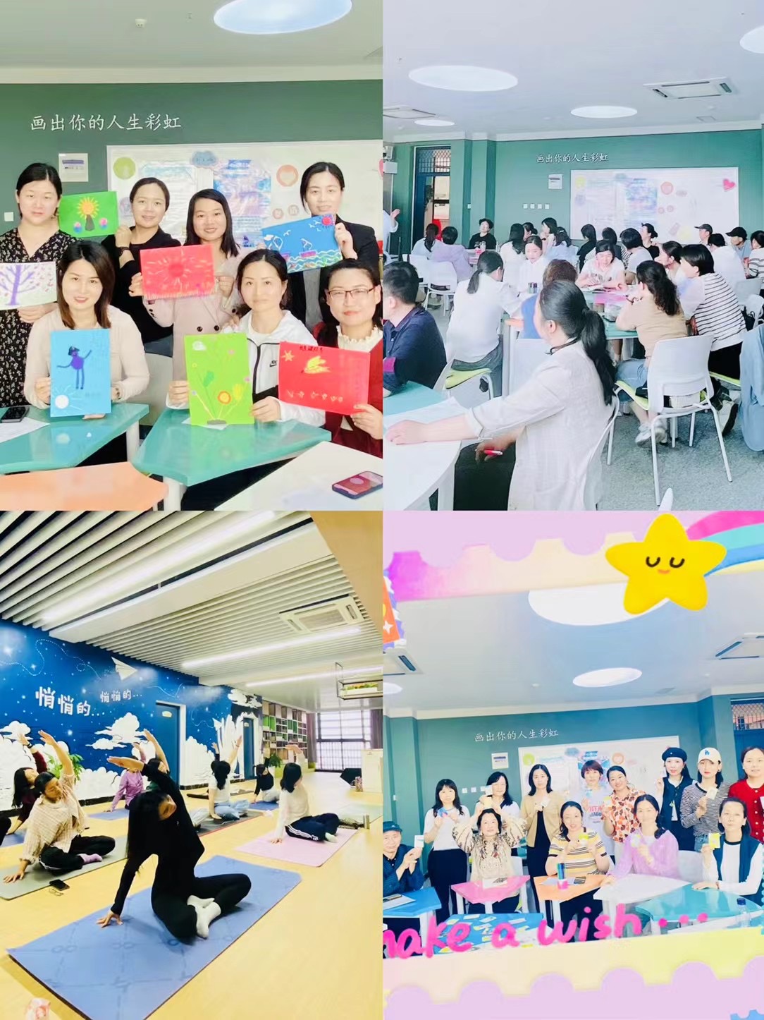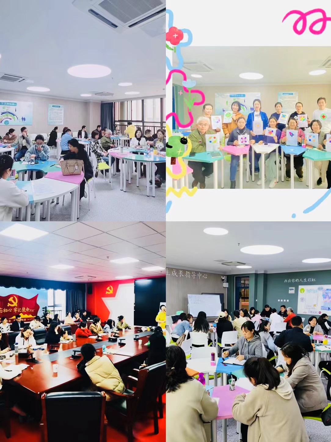 其次是家长团体活动辅导课,以20人以内的小班形式进行。通过组织曼陀罗绘画、黏土作画、操场同心鼓游戏等活动,为家长们提供了一个互动交流的平台。这些活动促进了家长之间的沟通和交流,让他们更加深入地了解了孩子的内心世界,也让他们更加珍惜与孩子的亲密时光。