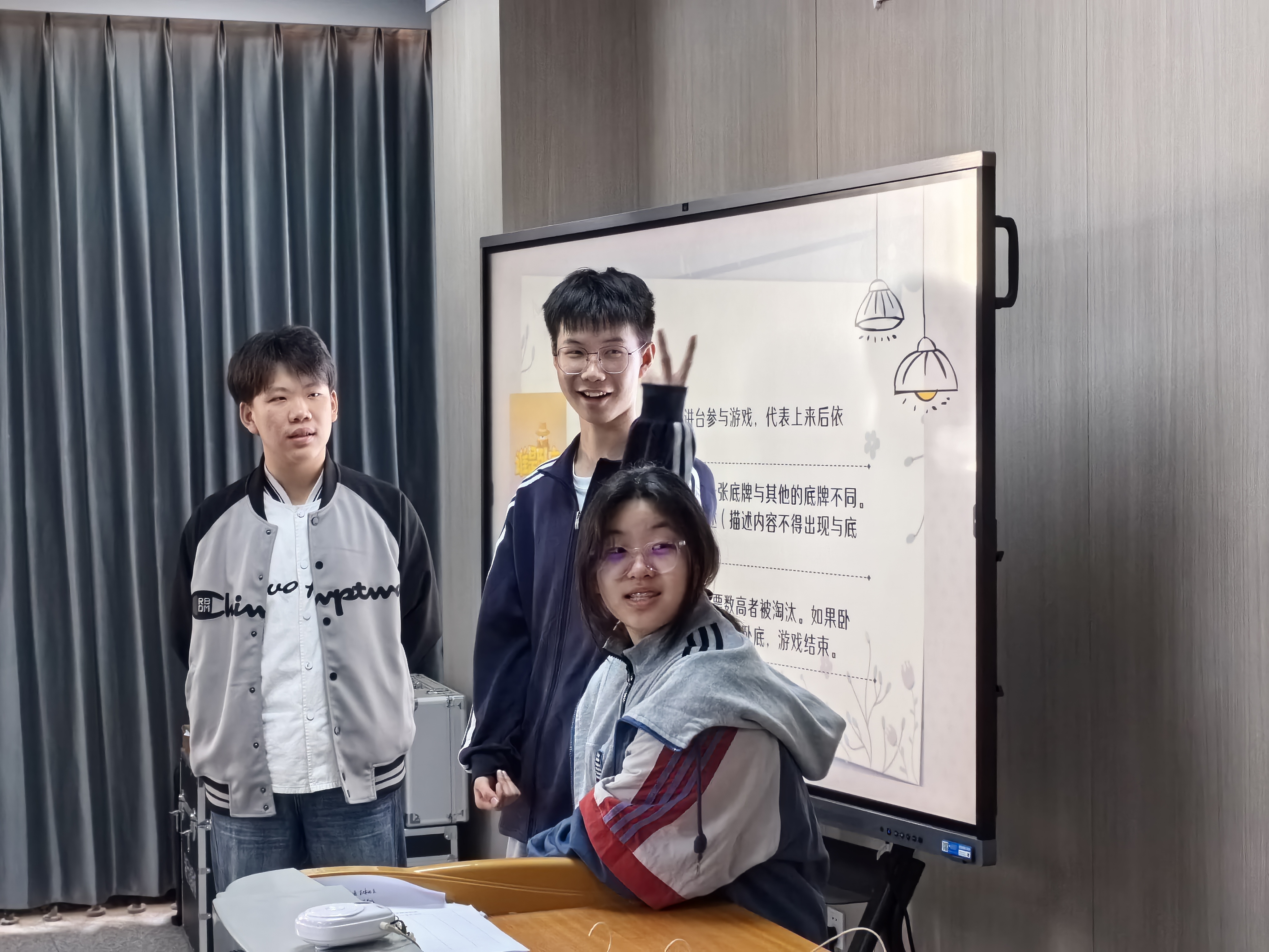 课程伊始,徐梦琨以“谁是卧底”游戏作为热身,每个小组的代表站在讲台上,根据手中的底牌进行描述,投票找出卧底。游戏结束后,老师引导学生们思考游戏中的情绪体验,如何才能管理自己的情绪和识别他人的情绪。