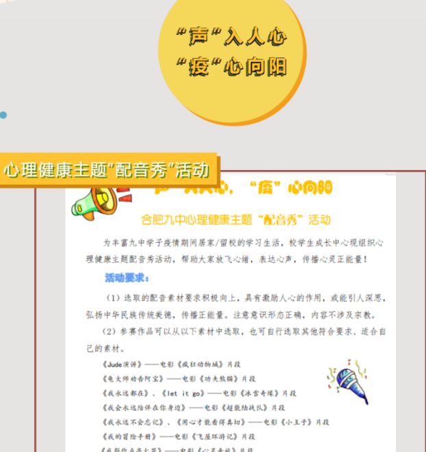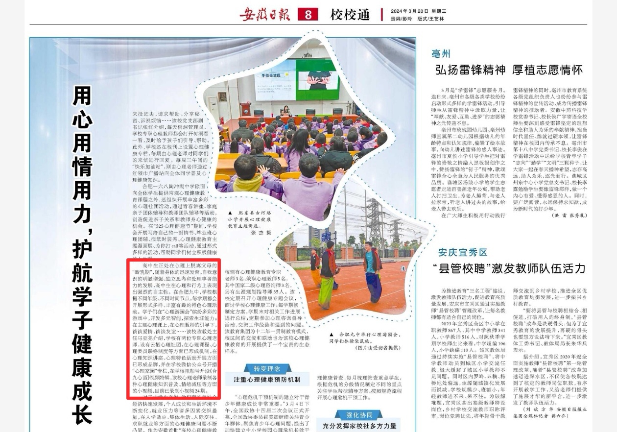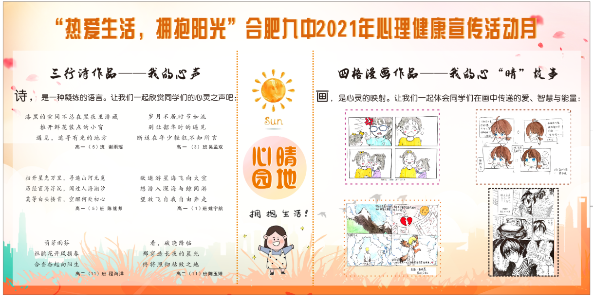 “云栖心理社”、“心理健康主题宣传活动月”、“微信视频号《合九心语》栏目”是合肥九中学生成长中心的三大平台,传播心理健康知识,多途径进行全方位的心理健康教育。