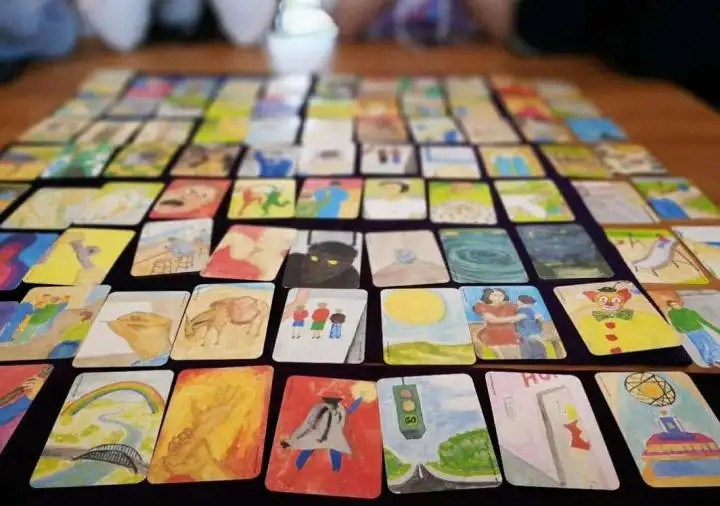 课程开始,徐梦琨和同学们商定了课堂旅行公约,介绍了OH卡的使用方法和注意事项,同学们组成的六个小组跃跃欲试。伴随着悠扬的轻音乐,同学们跟随指导语用右手选取了两张心仪的卡牌,一张代表自己心中的“我”,一张代表他人心中的“我”,开启了遇见自我的旅程。