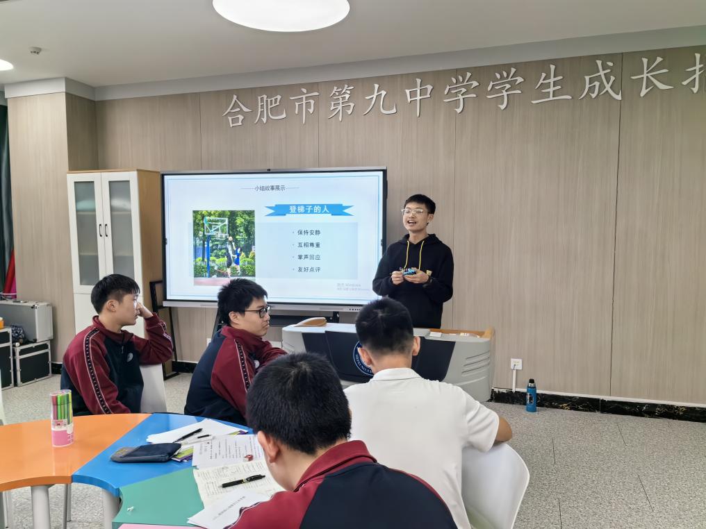 为引导学生树立正确、积极、全面的学习观,2023年10月,合肥九中心理健康教育教师徐梦琨为高二年级的同学们带来了一节名为“登梯子的人”的课程,和大家一起探讨何为学习,为何而学。
