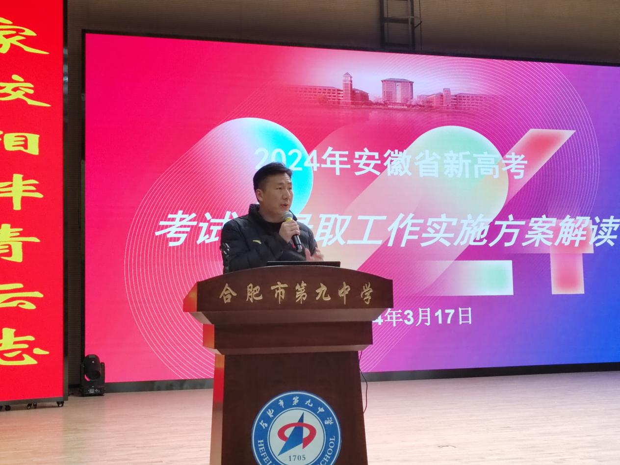 现场,范玮首先从考试安排、招生类别和志愿设置方式、普通类批次及志愿设置、划线办法、投档规则等五个方面对新高考相关政策进行了深入浅出的解读,在他的解读中,既有对政策变化的精准把握,也有对学生高考成功的殷切期望。范玮在讲话中强调教育是一场接力赛,家长和学校是最重要的接力棒,家长要与孩子进行真诚地沟通,关心他们的感受和需求,鼓励他们相信自己。他认为每个孩子都是独一无二的个体,都有无限的可能性,相信九中孩子会以自己的方式发光发热,迎接美好的未来。