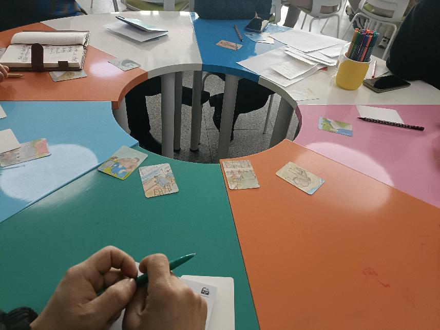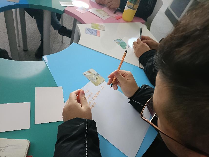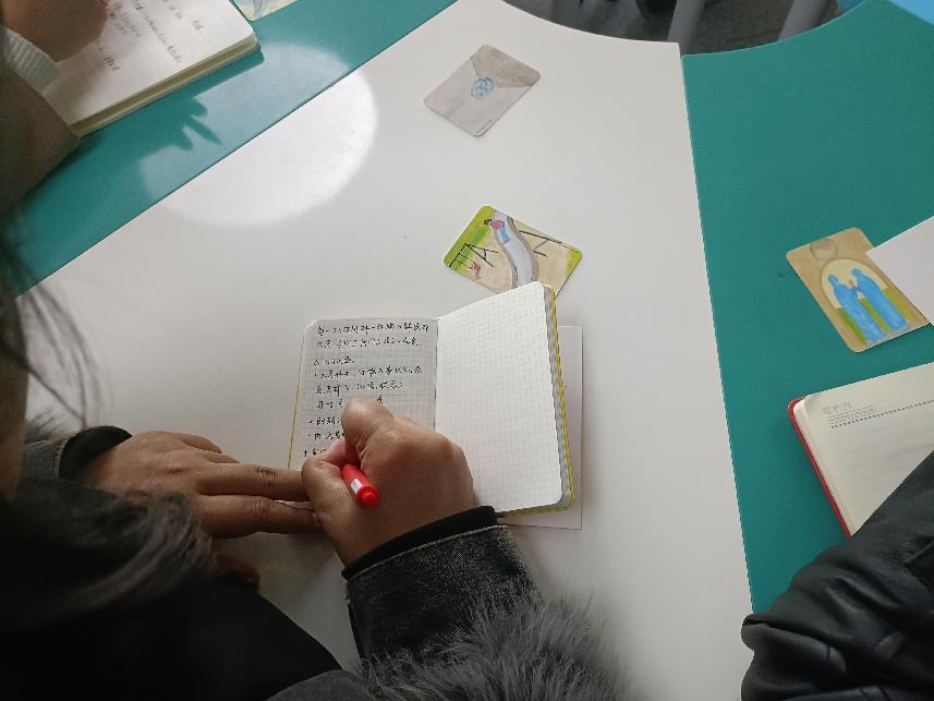 家长团体活动辅导是家长学校的重要内容之一。张桦将家长学员分为6个小组,每人选择一张最能代表自己或最喜欢的卡牌,并轮流向其他学员介绍自己。这是一个自我展示的环节,通过大家选择的卡牌,可以看到一些潜意识的直觉投射。每个人对同样的卡牌也会有不同的理解和解读,这就等同于家长和孩子们之间的沟通一样,你想表达的,未必是他理解的,所以这里会产生误解。所以要多沟通,尽量相互理解。