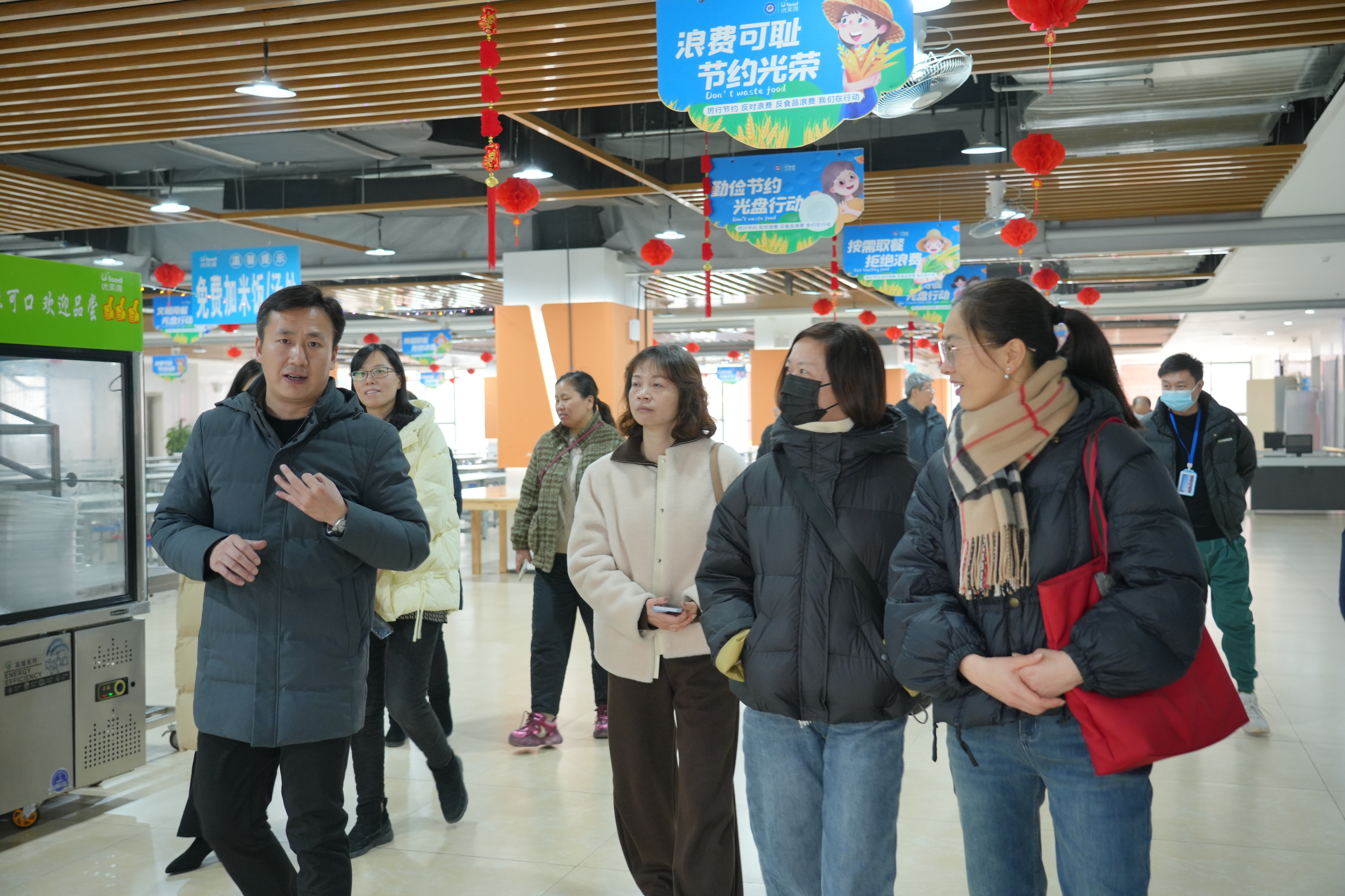 俭园为同学们提供了美味又健康的一日三餐。同学们的饮食安全是学校与家长们关注的重点。家长代表在分管副校长许祖国的带领下深入食堂后厨、加工车间、主副料仓库等地实地查看。特别对食堂的营业证照、工作人员健康证件、食品检验合格证、进货台账记录、食品原料保质期限、菜品种类、菜品价格、“明厨亮灶”的公示、留样、保温措施等一系列环节进行了细致全面的了解和参观检查。在参观检查的过程中,许祖国向大家详细介绍了目前学校日常管理模式、三家餐饮公司的经营状况、食堂常规工作等具体情况。针对家长们提出的问题,许祖国也一一进行了现场解答。参观结束后,家长们为学校的科学化管理、食堂的规范化操作点赞,同时对食堂环境、卫生、菜品的种类、质量、价格等方面都给予了高度肯定。也对学生就餐和学校食堂管理提出了合理化的建议。