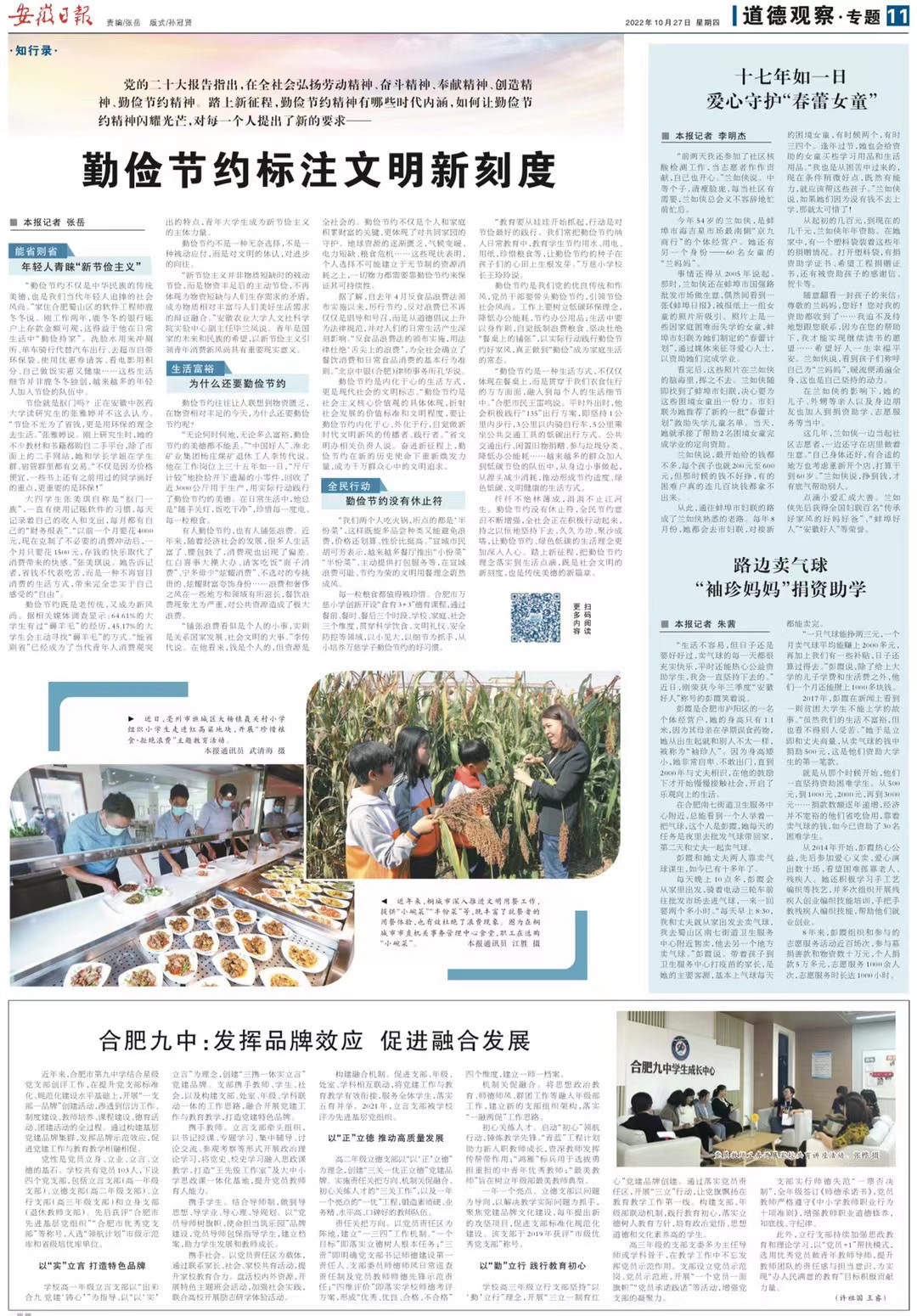 合肥九中党委始终将立德树人的根本任务贯穿于教育教学全过程,坚持“为党育人、为国育才”,以高质量党建带动教育教学高质量发展,将支部建在年级部上,结合星级党支部创评工作,在提升党支部标准化、规范化建设水平基础上,开展“一支部一品牌”创建活动,创造性地打造“功能型党小组”党建模式,构建“党建+”路径,实施“一月一主题”特色党日活动,以党建统领学校信访工作、制度建设、教师培养、课程建设、德育活动、团建活动的全过程,凝聚党建强大正能量,努力绘就“美好教育”新蓝图。近日,安徽日报以《合肥九中:发挥品牌效应 促进融合发展》为题报道了我校党建特色。