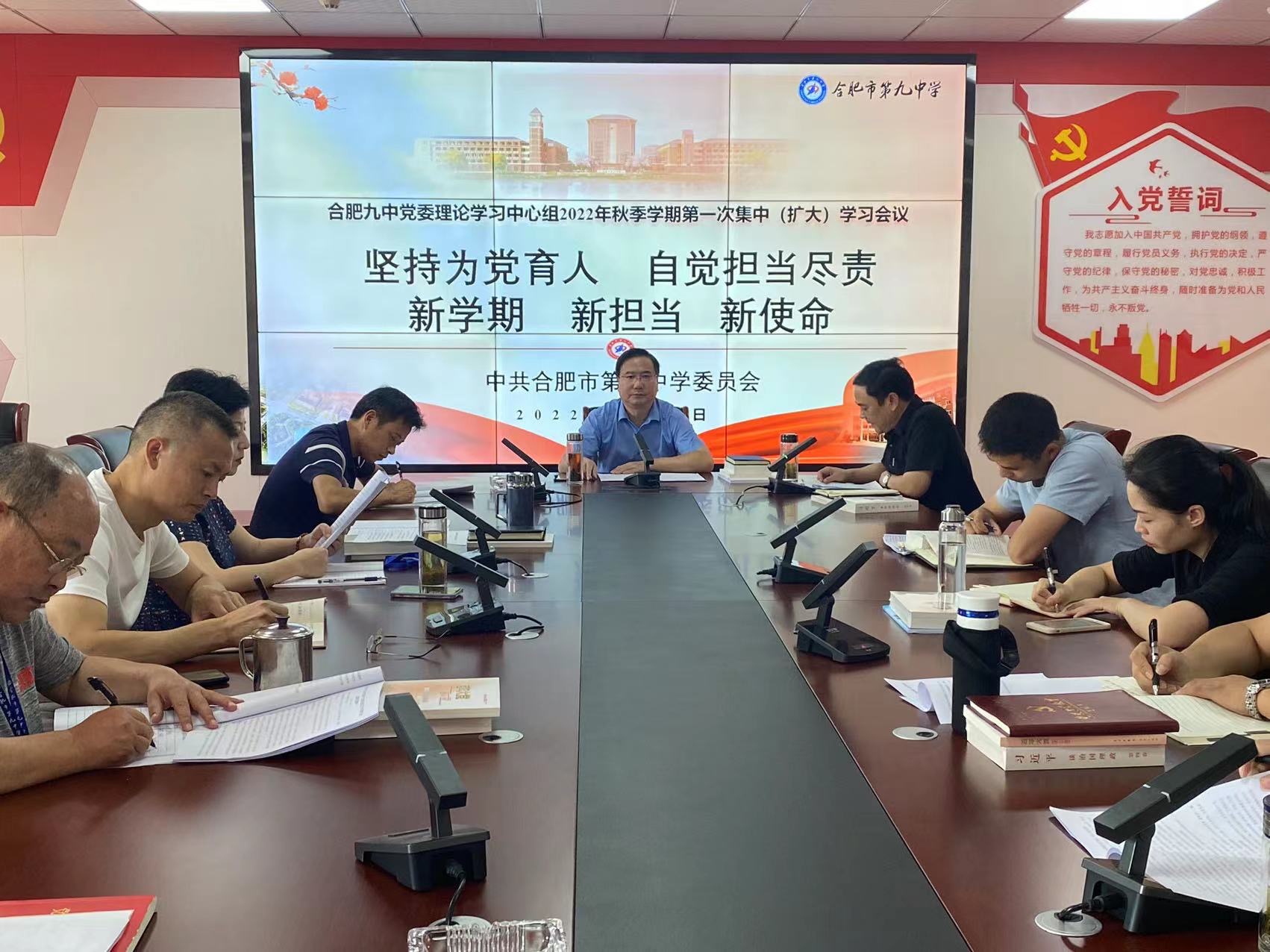 9月16日上午,合肥九中党委理论学习中心组在新站校区11楼会议室举行2022年秋季学期第一次集中学习研讨会。校党委书记、校长章伟主持会议并讲话,校党委委员、在职党支部书记、支部委员参加研讨。