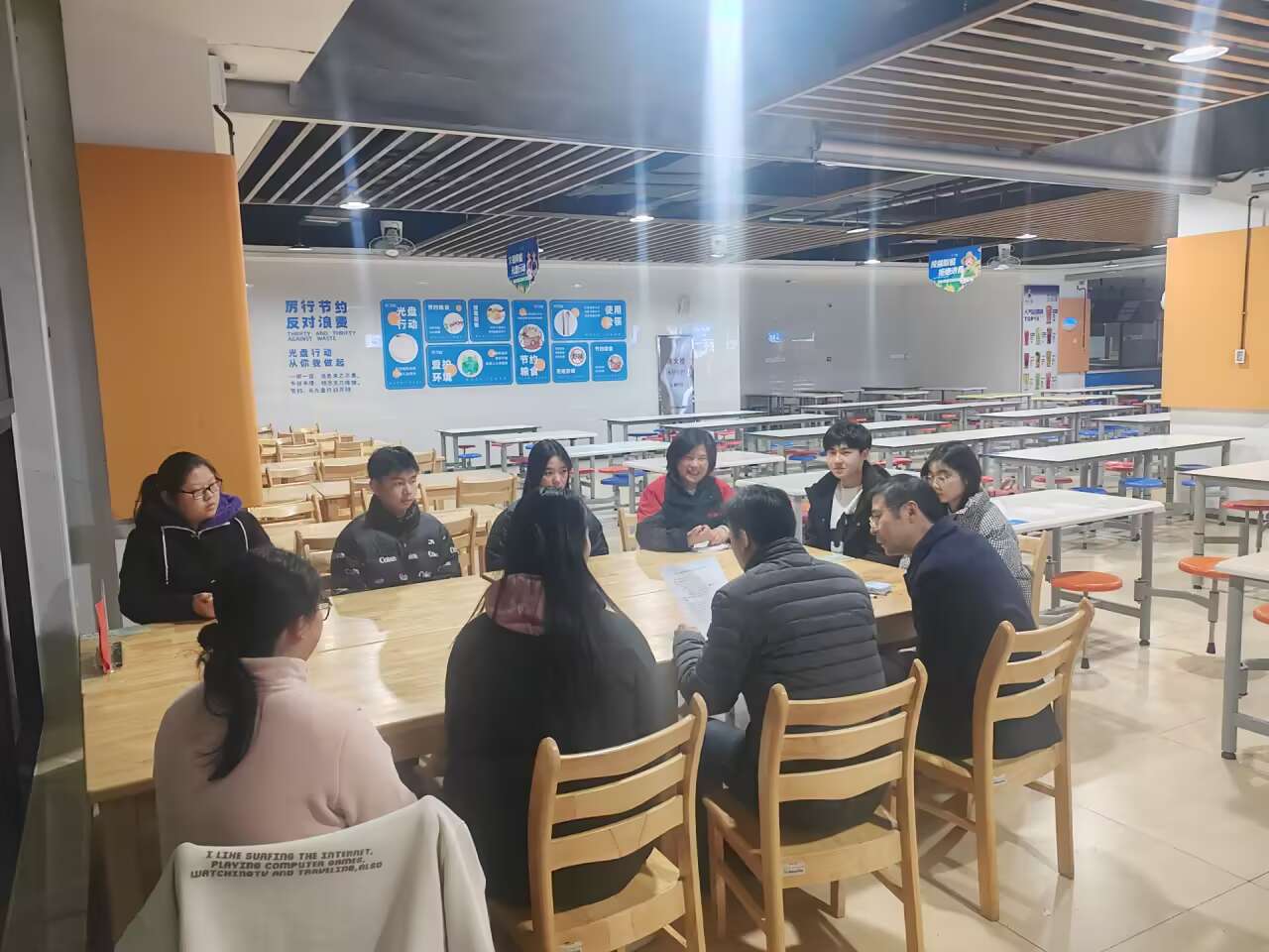 而在食堂里,党员教师们化身“美食伙伴”、“餐饮安全质检员”,与学生们一同排队打饭,同桌就餐,亲切交流,同时也积极参与到食堂菜品质量安全检查中。他们仔细检查所进菜品的品质、细心询问学生对菜品口味和种类的看法,认真倾听学生们对于餐饮服务的心声和诉求,并将这些宝贵的意见及时反馈给食堂管理人员,积极推动食堂不断优化菜品结构、提升服务质量,搭建起了学生与食堂之间沟通的坚固桥梁,让每一餐都充满温暖与关怀。