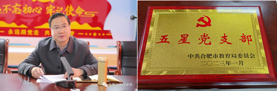一个支部就是一座堡垒,一名党员就是一面旗帜。合肥九中高二年级支部是一个“思想上合心、工作上合力、言行上合拍”的党支部,曾荣获“合肥市先进基层党组织”、“合肥市优秀党支部”等表彰荣誉,是全省中学中唯一入选“领航计划”市级示范库和省级培优库的单位。在2023年3月17日,高二年级支部被合肥市教育局党委授予“五星级党支部”荣誉称号。