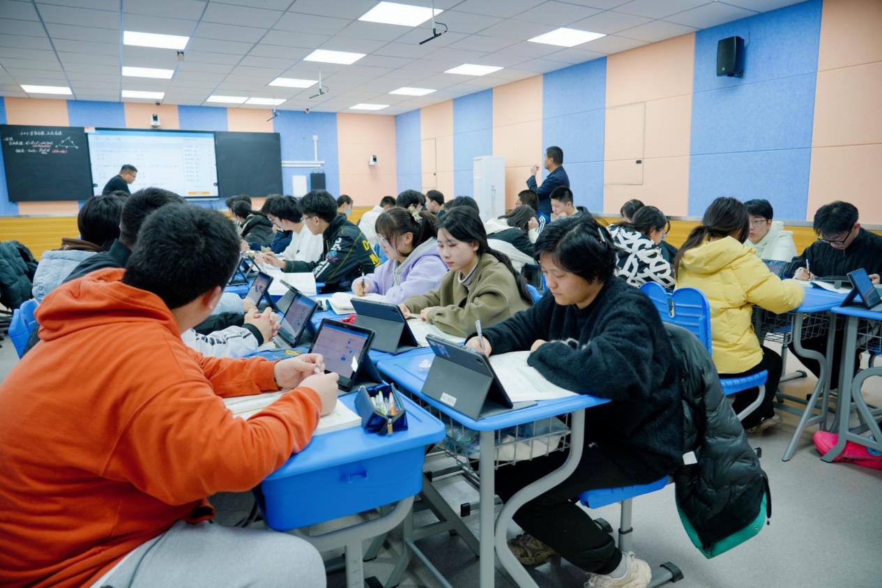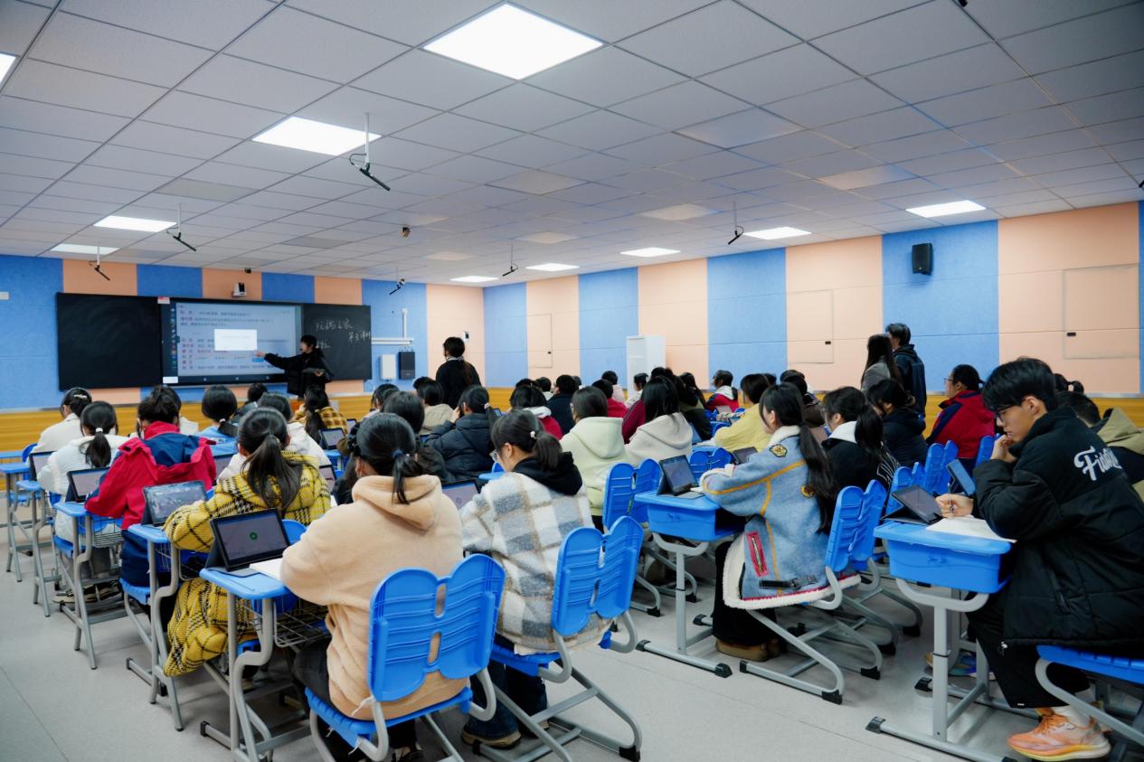 接着,参访团来到录播教室,现场观摩了精彩的智慧课堂示范课。课堂上,教师巧妙地运用现代信息技术手段,将平板教学与传统教学方式深度融合,充分激发了学生们的学习兴趣,高效展示了智慧课堂的独特魅力与显著成效。