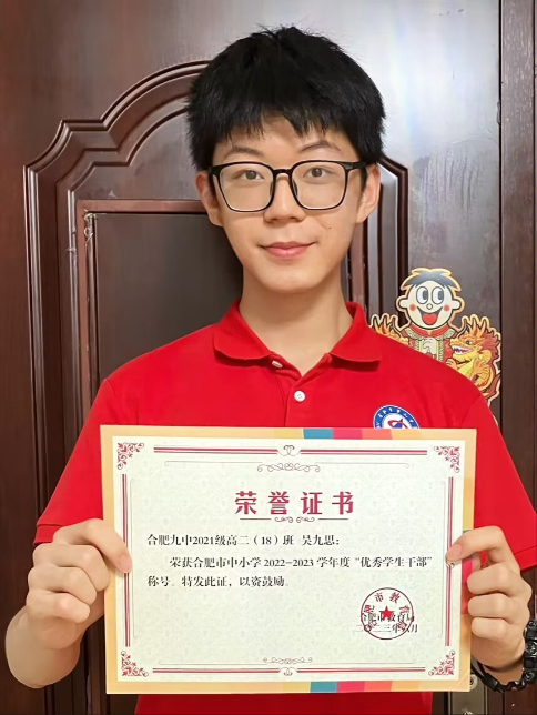 吴九思同学获得“合肥市优秀学生干部”