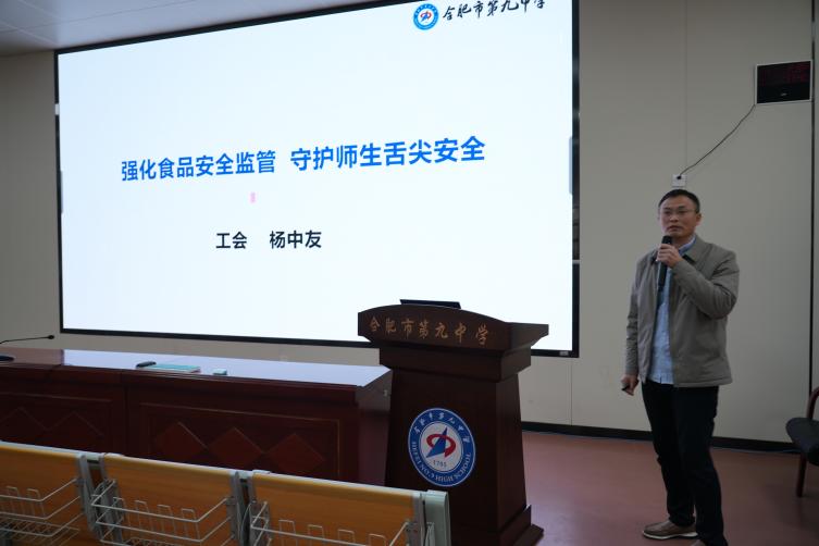 工会副主席杨中友以《强化食品安全监管,守护师生舌尖安全》为题开展报告。民以食为天,食以安为先。从被动应对投诉,到在检查与整改中进步,再到取得阶段性成果,校工会持续进行现场监督、健康检查、常态监控、隐患排查,让每一位师生都能吃得安全、吃得健康、吃得营养,持续增强广大师生和家长的获得感、幸福感、安全感。