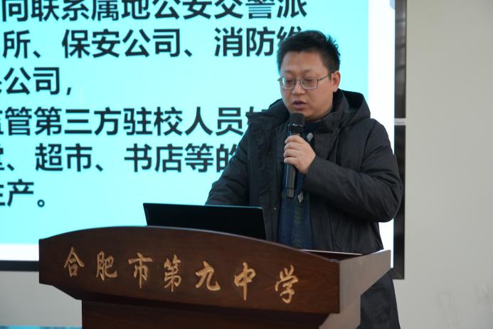 保卫科科长李磊以《建平安校园,守合九安宁》为题开展报告。过去的一年,保卫科全体人员对校园安全工作常抓不懈,建设“平安校园”,持续深化落实“建章立制、消除隐患、强化检查、严格监管、重在教育”的安全工作机制和“党政同责、一岗双责、齐抓共管”的校园安全工作责任体系,有力地保障了师生安全和校园稳定。未来,保卫科将时刻谨记居安思危,危机在背。保障师生安全和校园安宁,永远在路上!