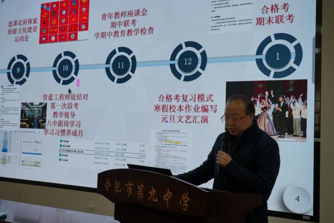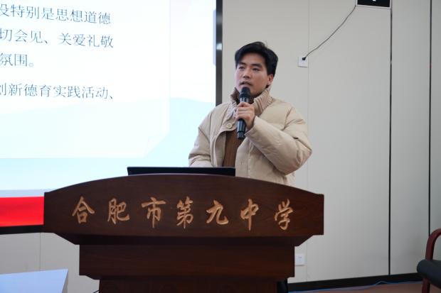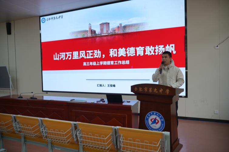 高三级部德育主任王俊峰以《山河万里风正劲,和美德育敢扬帆》为题开展报告,明确站好讲台、抓好常规、借好外力、做好活动四项努力举措,努力探索新时期德育工作的特点和规律,持续不断地下硬功夫、长功夫、细功夫,为合肥九中2025届高考助力添彩!