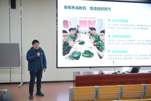 新站校区高一级部德育主任邵帅以《德育引领,青春绽放》为题,汇报了本学期的工作成果,“稳固根基”“培育新人”“遵规守纪”“寓教于乐”“凝聚人心”“疏导情绪”“疏导情绪”“融合协作”“全面发展”“沟通桥梁”十个关键词高度凝练了本学期工作。未来,新站校区高一级部将进一步提升高一年级部的德育工作水平,为学生的健康成长和全面发展提供有力保障。