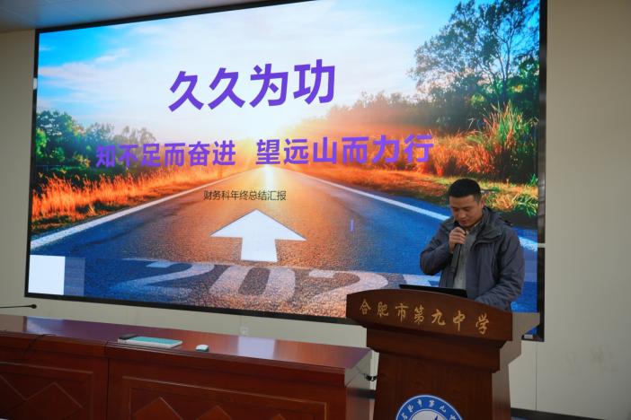 财务科科长高猛以《久久为功——知不足而奋进 望远山而力行》为题开展报告,从“聚能奋进,征程回顾”“卓梦启航、愿景展望”“锐进新程,合九新篇章”三个方面对本学期工作进行了全面的回顾与展望,之后会持续加强财务管理创新、优化资源配置、提升财务服务水平、强化内部控制制度,从而全方位、多元化地提高财务科的处事办事能力。