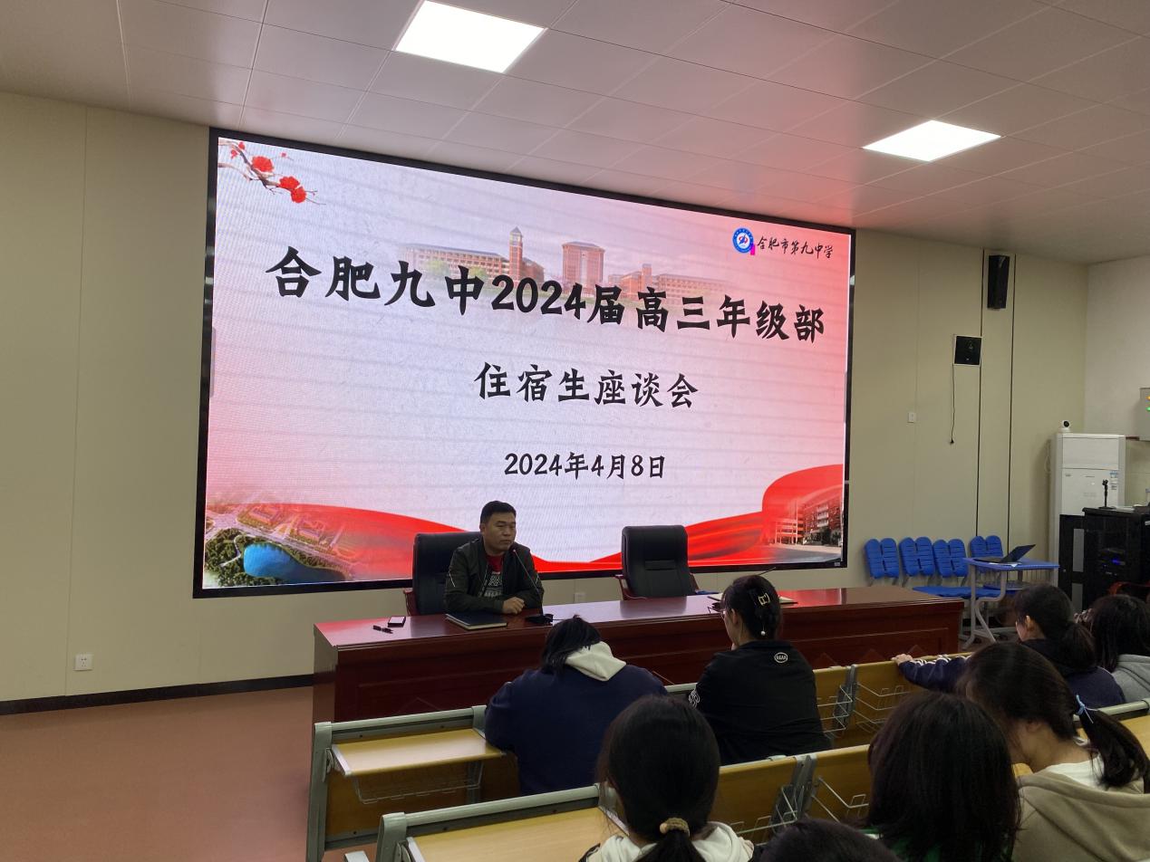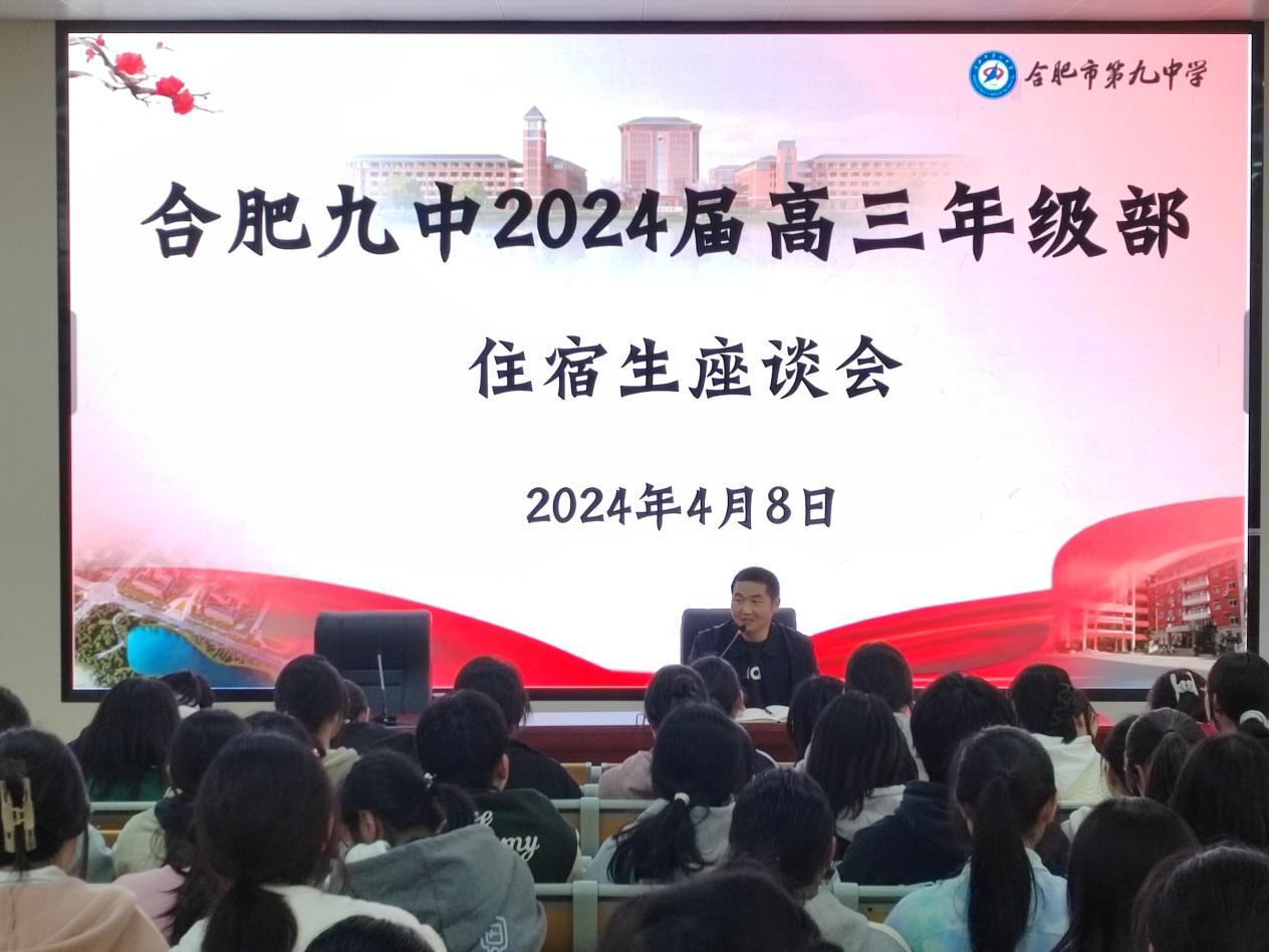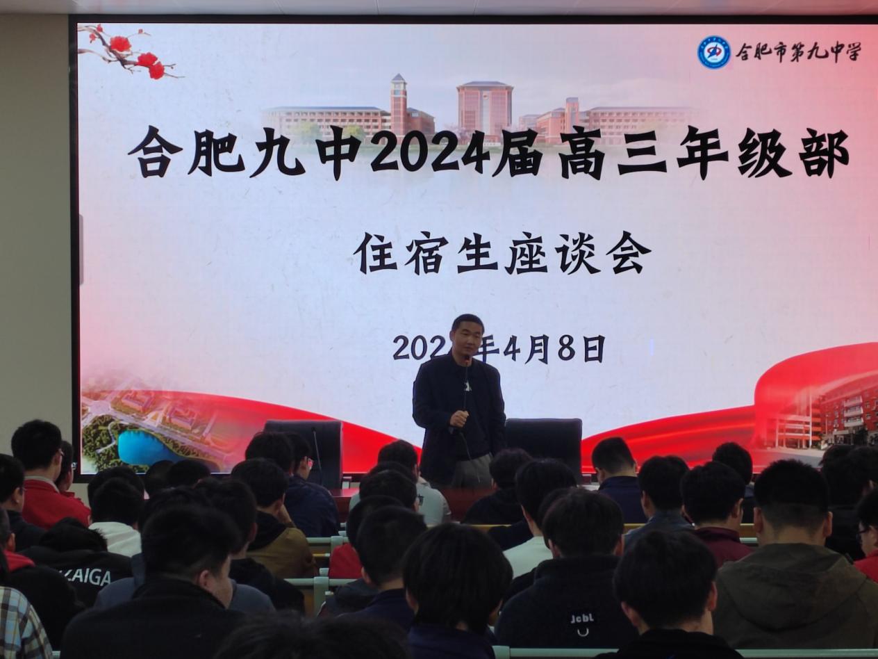 为了进一步加强住宿生的管理,充分发挥寄宿制的优势,为即将到来的高考提供有力支持,合肥九中2024届高三年级部举行高三年级住宿生座谈会。此次座谈会由高三年级部德育主任邵帅主持,高三年级部主任周福远到场与学生交流,全体住宿生积极参与,共同探讨如何更好地度过这段紧张而充实的备考时光。