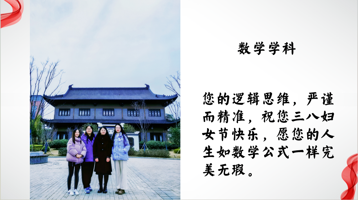 在九中的校园里,有一群特别的女性,她们不仅在各学科领域中闪耀着智慧的光芒,还在日常生活中给予学生无微不至的关怀与照顾。在这个特殊的日子里,要向她们表达最诚挚的敬意和感谢。