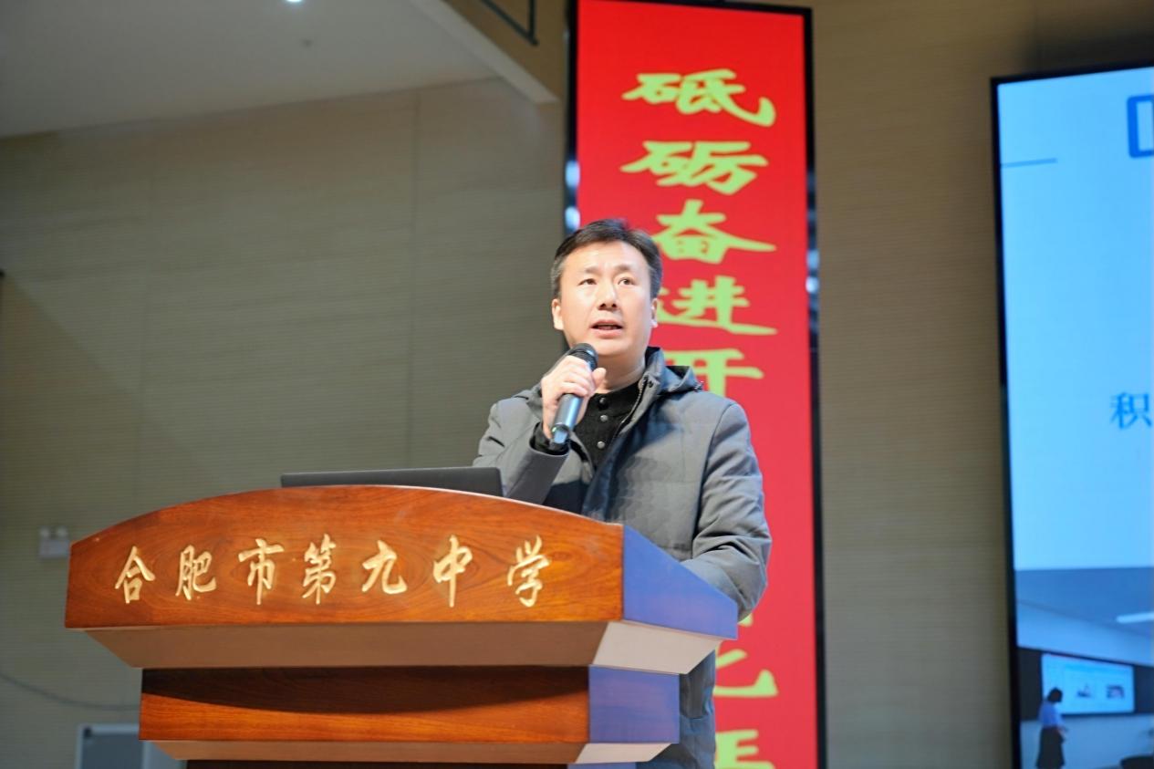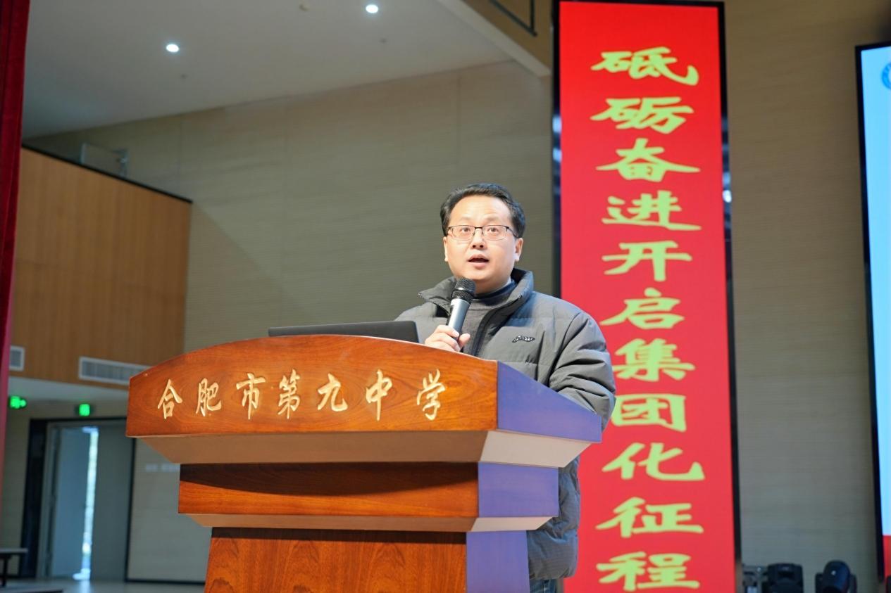 校党委副书记、校长张永剑作总结发言。他着重强调了师德师风的重要性。全体教职工要时刻坚守师德底线,弘扬高尚师德,营造风清气正的教育环境。在回顾过去一年时,张永剑梳理了学校所获的各项成就与荣誉,这些熠熠生辉的成果,是九中全体师生共同奋进的有力见证。他指出,迈向更加美好的未来,合肥九中必须以汇聚众人智慧、凝聚各方力量为基石。当下,学校正处于发展的紧要关头,全体九中人务必秉持“归零心态”,勇于“刀刃向内”,进行深刻的自我革新。 展望新的一年,学校将在“一校两区”办学模式优化、特色多样化发展探索、“三新”深度研究推进、教育数字化革新实践以及教育集团化发展拓展等重要领域积极作为,主动出击、抢占先机、拓展优势。最后,张永剑代表学校党委,向全体教职工致以节日的祝福。