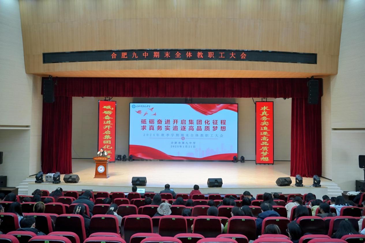 日月向前、步履矫健,在岁末年关之际,为全面总结学期教育教学工作,推动学校集团化高品质发展,1月21日下午,合肥九中在庐州会堂隆重举行2024年秋季学期期末结束工作会议,大会由办公室主任王睿主持,全体教职工参会。