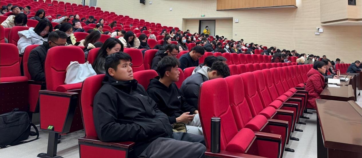 接着,校党委委员、副校长范玮回顾了本学期在教学教研、校园安全、后勤保障、膳食管理等方面所做的工作。他从教学常规管理的落实情况、师资队伍建设的成效与挑战、教学质量保障的举措与成果、课程建设推进的进展与方向、教学信息化推动的力度与问题等多个维度进行了深入剖析。 同时,范玮还对校园安全及后勤保障工作进行了分析总结,对在这些岗位上辛勤付出的分管干部表达了衷心感谢。他表示,过去一学期,校园秩序井然,后勤服务贴心到位,膳食管理成果显著,教学成绩稳步提升,这些都离不开全体教职工的辛勤汗水与聪明才智。新的学期,期待大家团结一心、砥砺奋进,以更加饱满的热情和昂扬的斗志,开创学校教学工作的崭新局面,为学校的蓬勃发展贡献更多的力量。