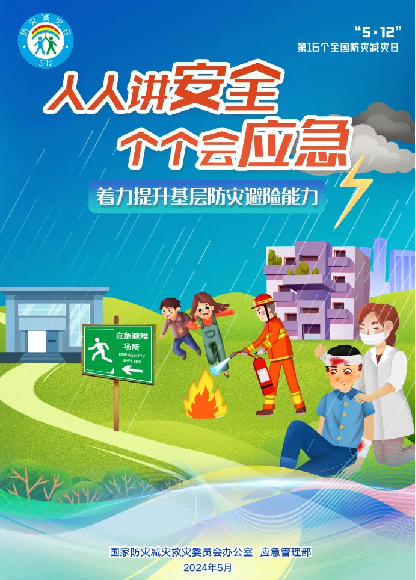 今年5月12日,是我国第16个全国防灾减灾日,5月11日至17日,为防灾减灾宣传周!今年的主题是:人人讲安全,个个会应急,着力提升基层防灾避险能力!