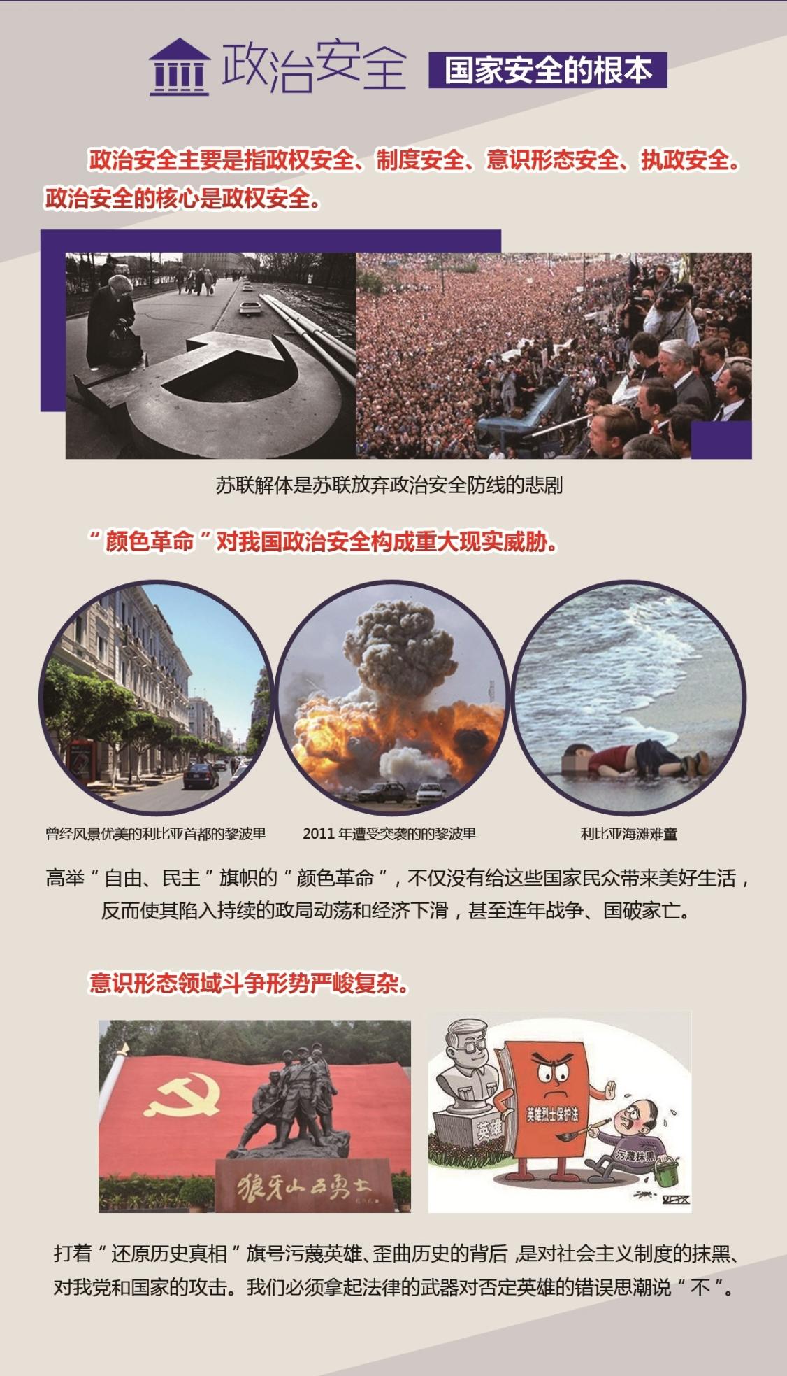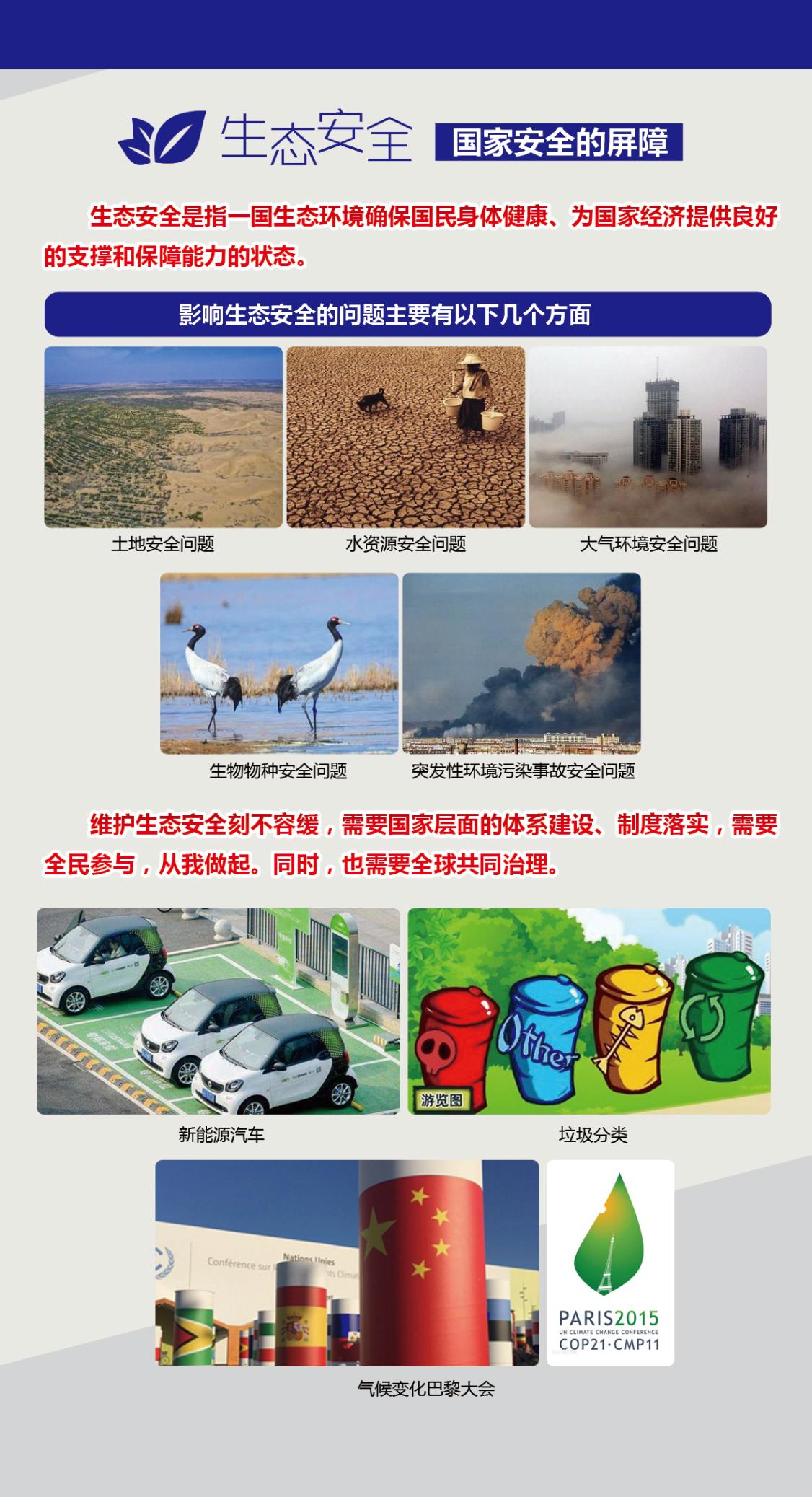 2024 年4月15日是第九个全民国家安全教育日。今年的宣传教育活动主题是“总体国家安全观·创新引领10周年”。增强全民国家安全意识和素养,夯实以新安全格局保障新发展格局的社会基础,坚持以总体国家安全观为指导,大力宣传普及国家安全知识及法律法规,着力培育国家安全意识,进一步推动总体国家安全观深入人心、落地生根,引导学生挺膺担当时代新人,共筑国家安全防线。让我们一起学习了解一下什么是总体国家安全观吧!