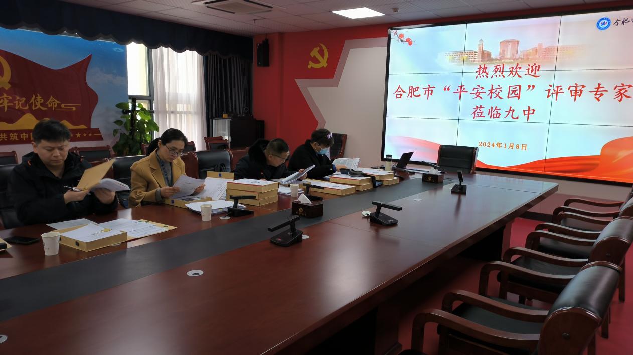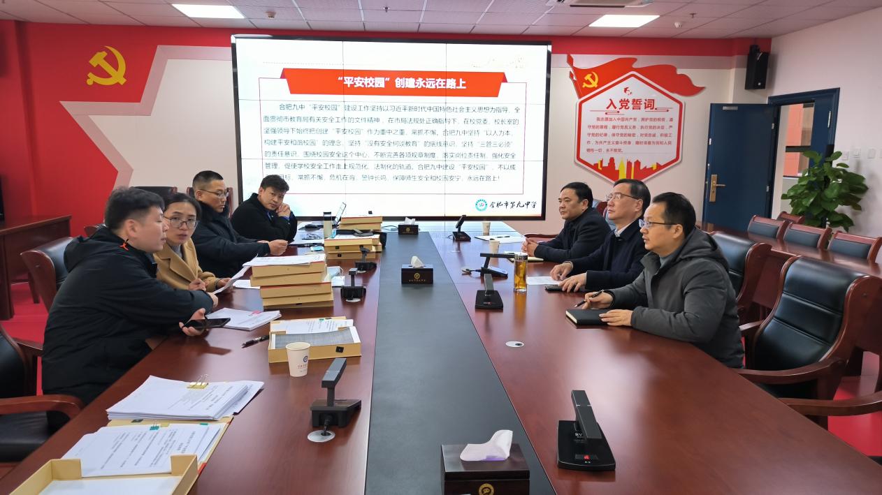 1月8日下午,合肥市教育局2023年度平安校园工作考评专家组第一组杨晶、宫磊等一行四人莅临合肥九中检查指导年度平安校园创建工作。合肥九中党委书记章伟、校长张永剑、副校长许祖国等陪同专家组进行了各项实地考评,并出席了指导创建的反馈会议。